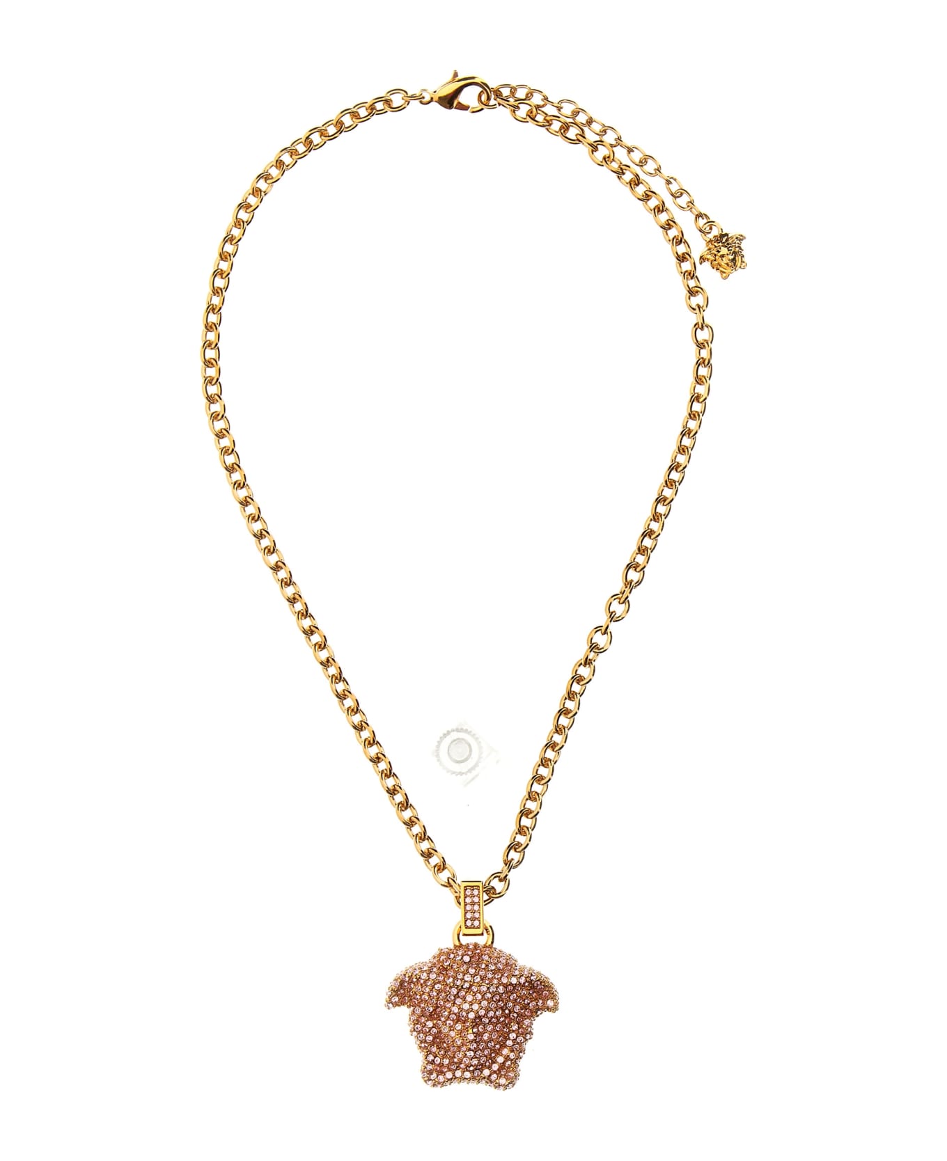 'La Medusa' necklace in brass embellished with ll-over crystals, a snap hook closure.