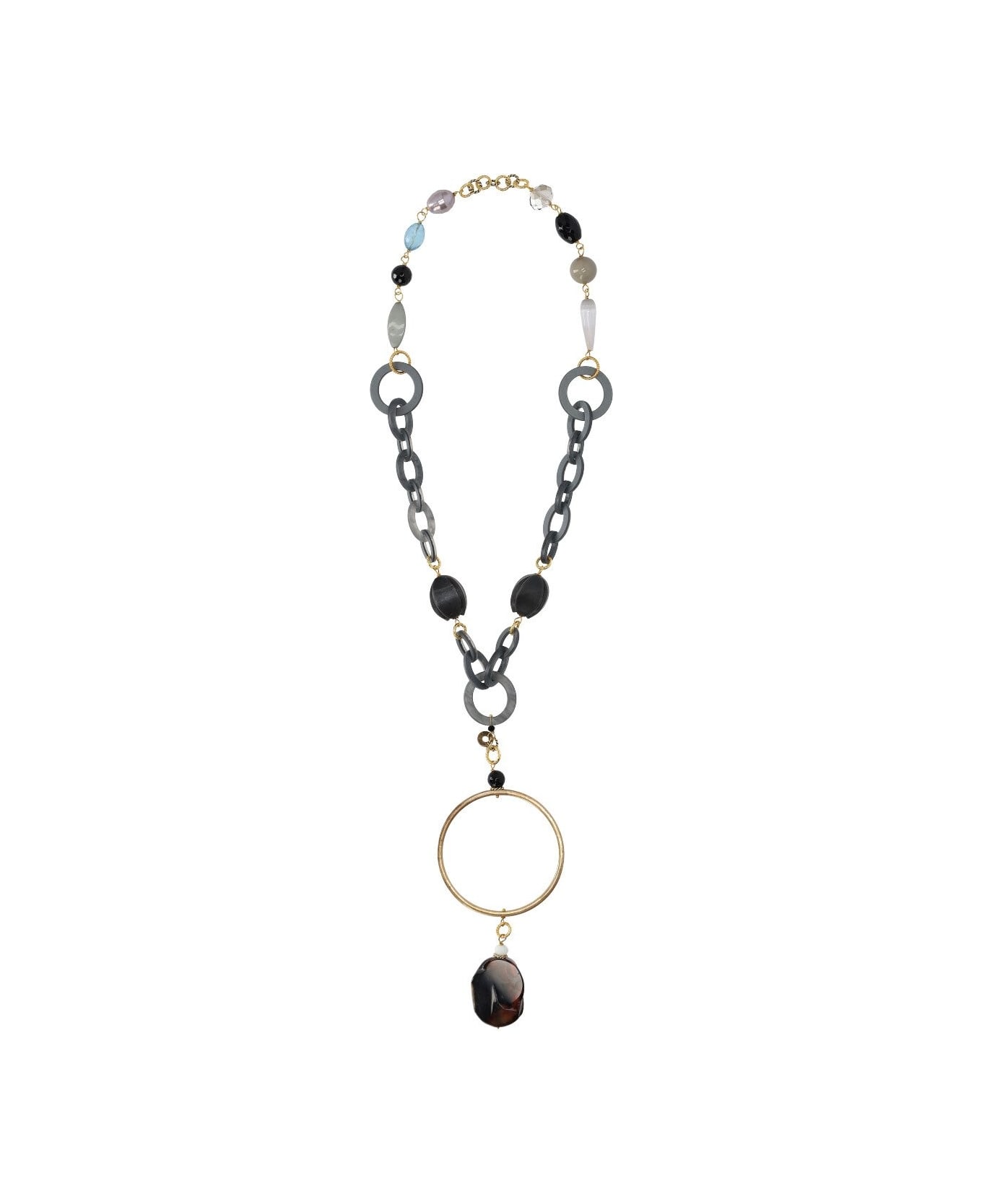 Àlmala Metal necklace made of golden brass and stones in grey tones. Length 51. 5 cm.
