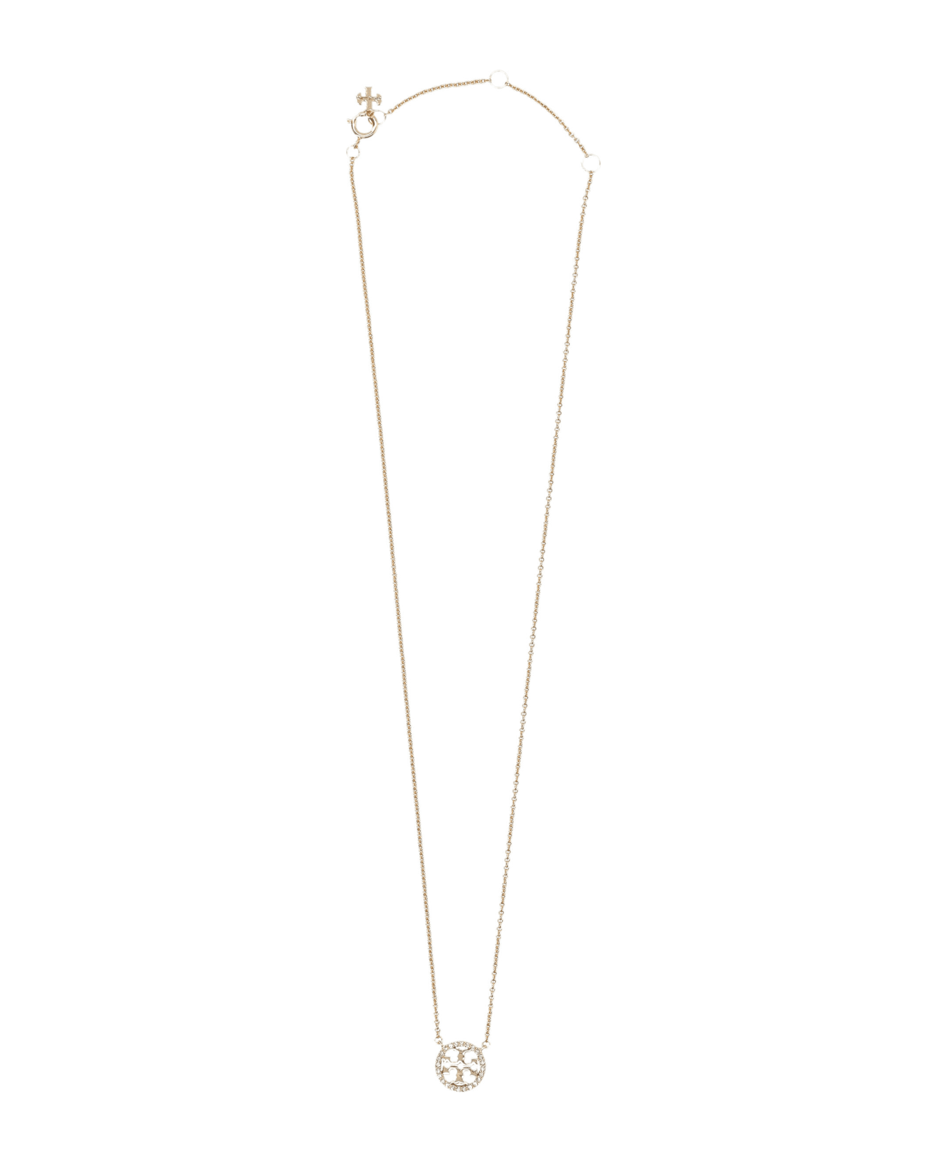 Miller Pave Pendant Necklace By Tory Burch. Featuring: Silver And Gold Tone Chain Crystal-embellished Logo Pendant Adjustable Lobster Clasp Closure Signature Logo Charm