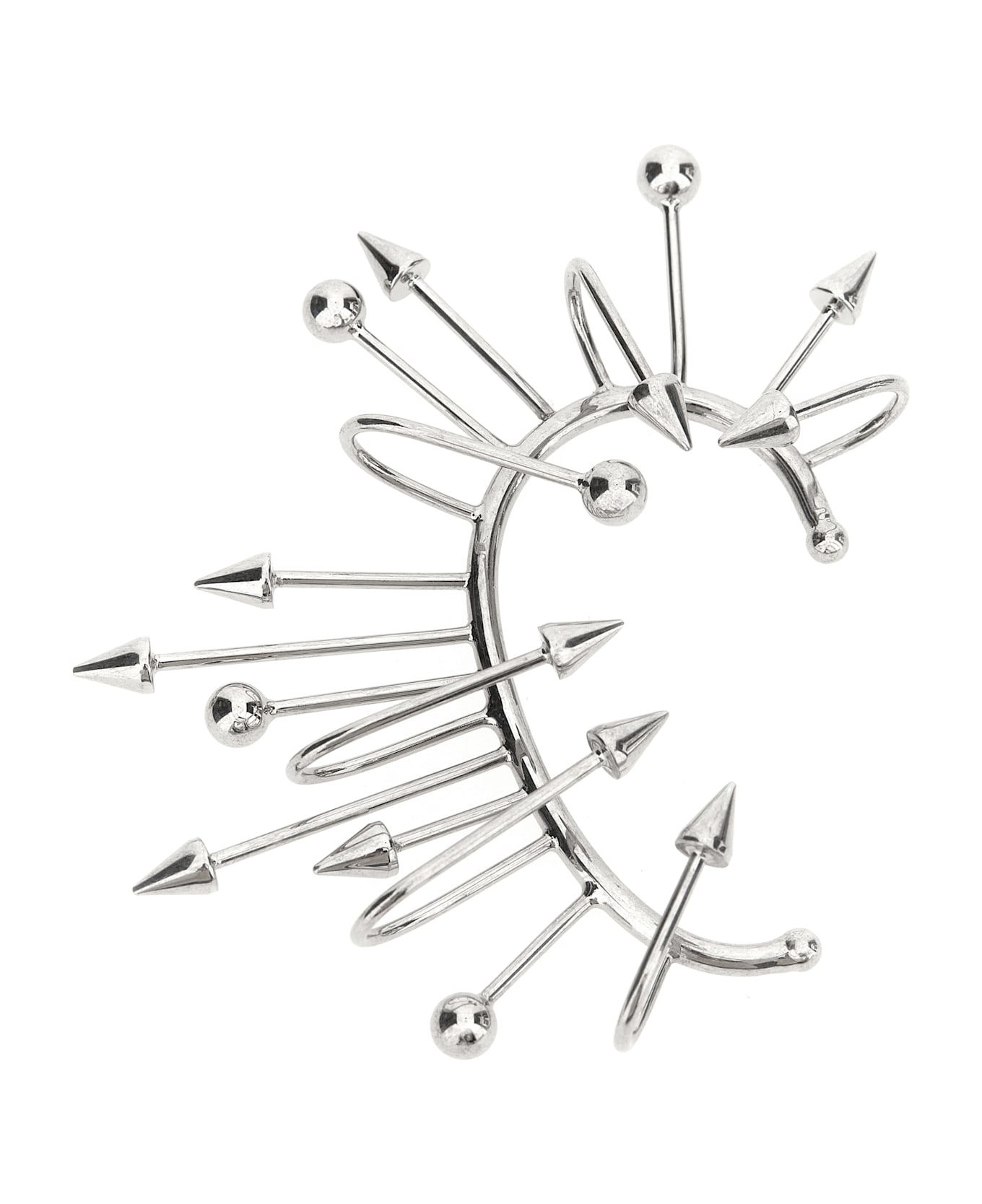 'The Spike' earrings in silver metal with studs, interlocking. ITEM CANNOT BE RETURNED