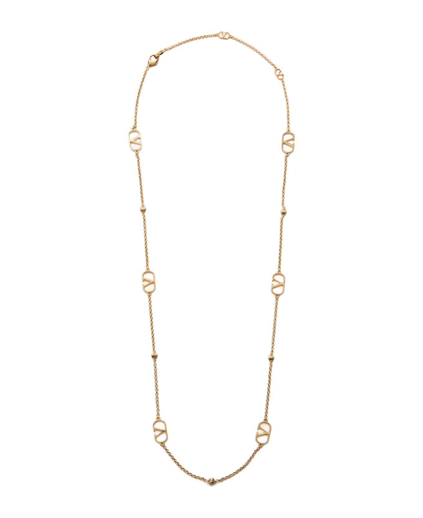'VLogo' metal necklace with gold color finish, snap hook closure, adjustable. Composition: 100% brass