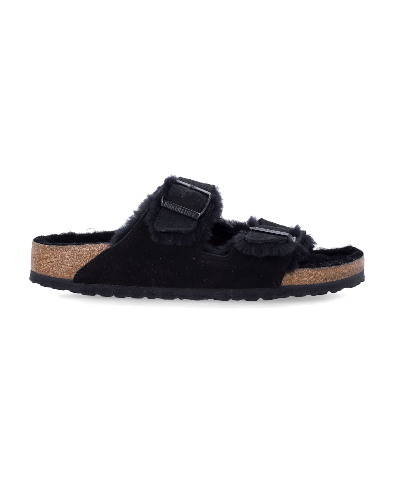 Suede Leather Arizona Shearling By Birkenstock. Featuring: Shearling Lining Two Straps With Adjustable Metal Pin Buckle Anatomically Shaped Cork-latex Footbed Eva Sole Narrow Fit