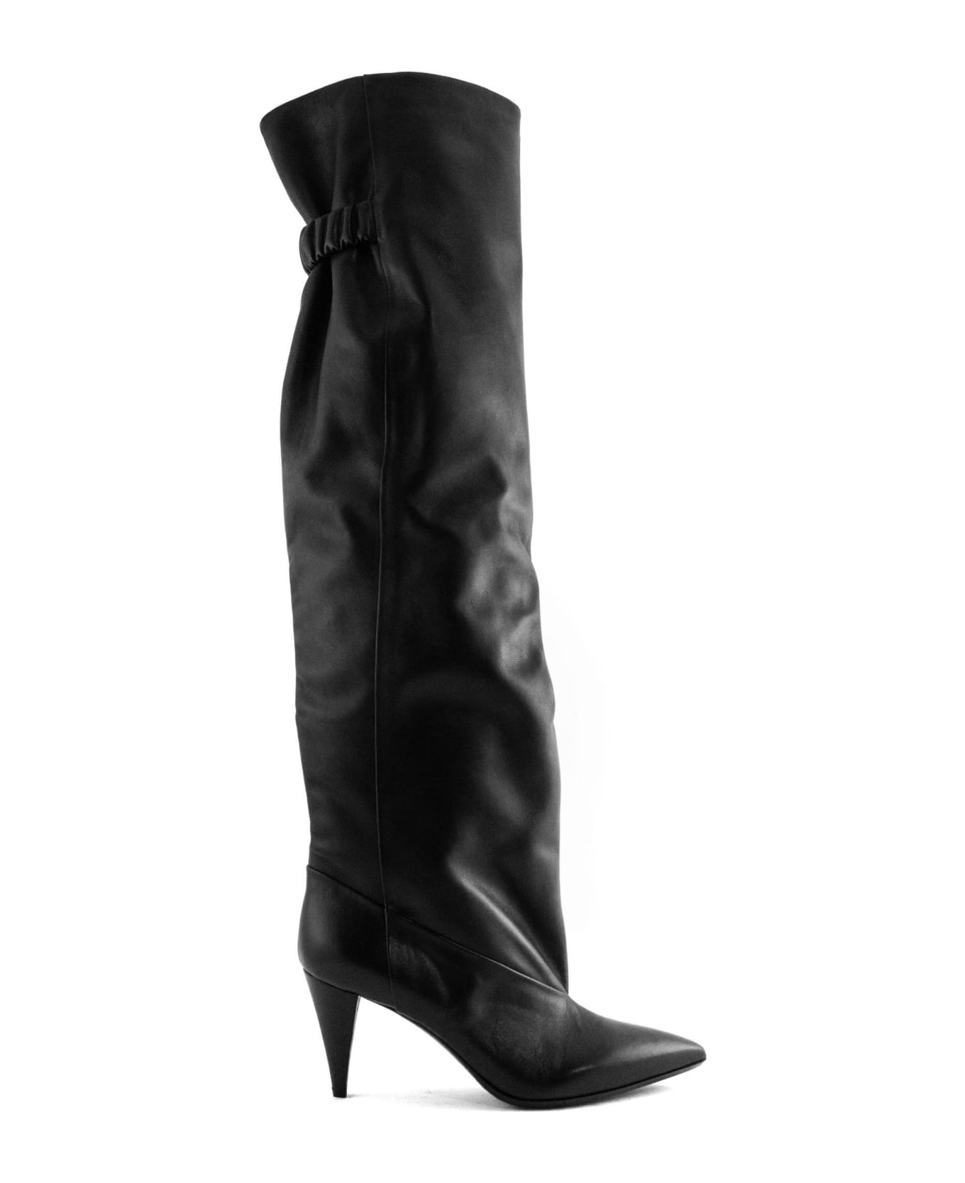 Black leather high boots featuring Inner lining in leather, leather sole and insole, back elastic band, covered heel 80mm