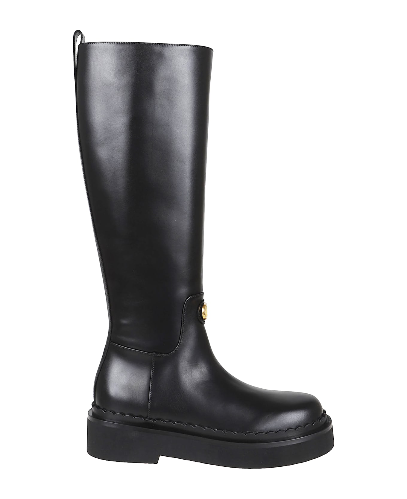 Calfskin boot by VALENTINO GARAVANI. Pull-tab at the back; knee-length shaft. Featuring an antiqued brass-finish VLogo Signature.