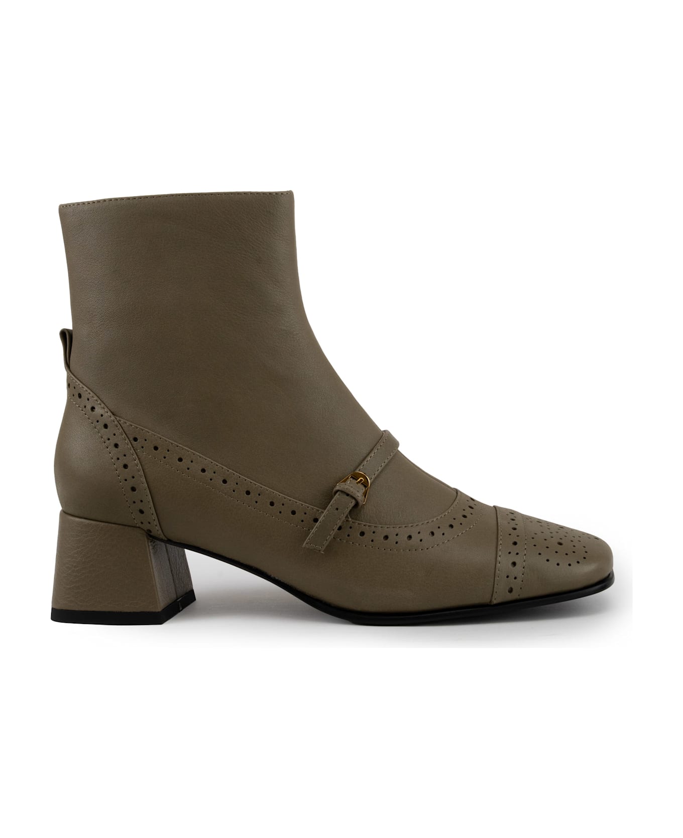 campus women's ankle boots: leather upper side zip closure brogue details metal buckle square tip leather insole and interior rubber injection sole heel 4. 5 cm composition: 100% leather 100% rubber