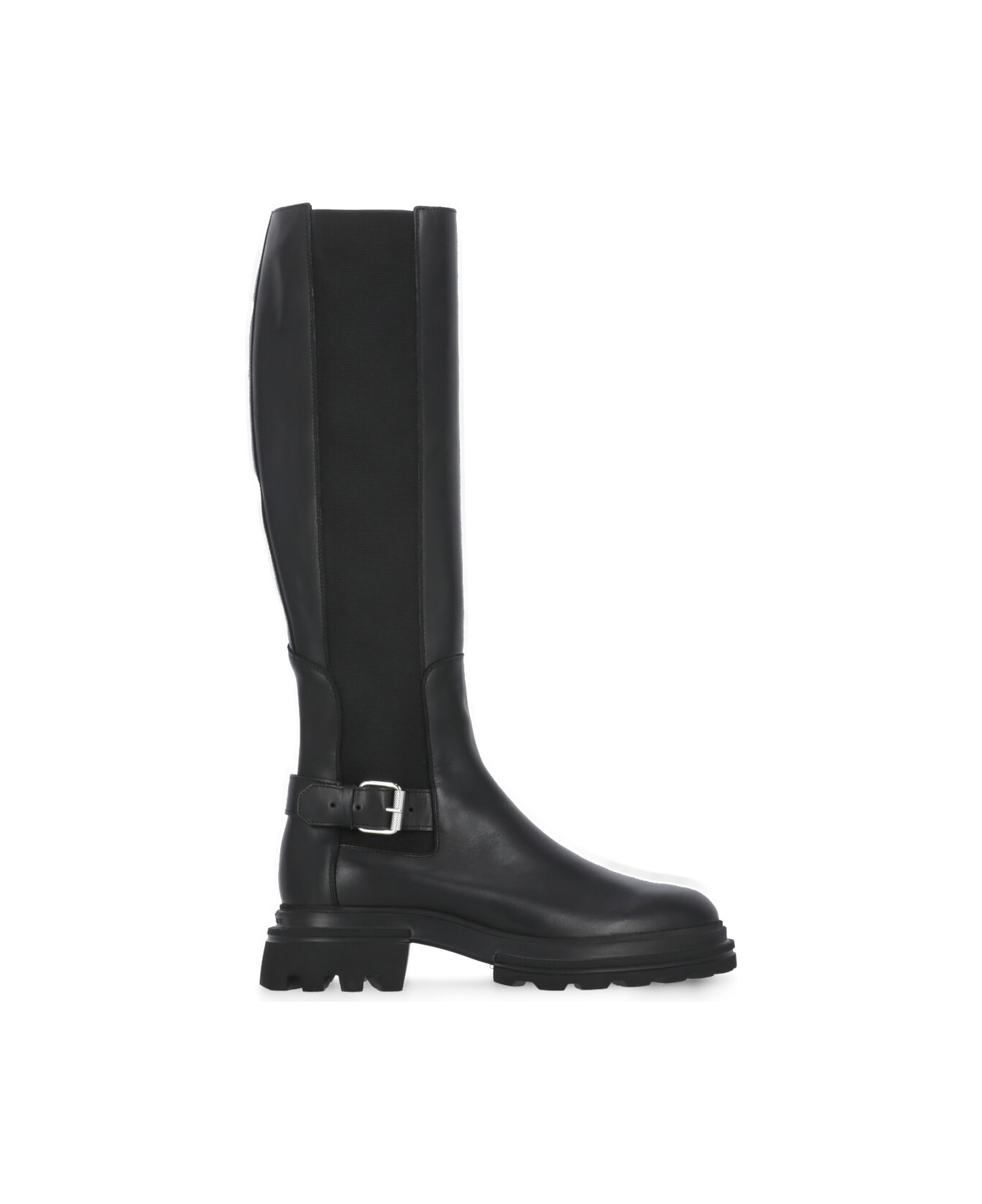 - Black Hogan leather chelsea boots for woman - Round toe - Side buckle detail - Heel: 5 cm
