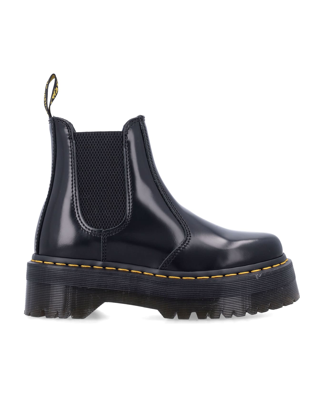 A Timeless Icon, The 2976 Quad Chelsea Boots By Dr. Martens Merge Heritage With Modern Edge. Crafted From Highly Polished Smooth Leather, They Feature A 4,7 Cm Platform Sole And Goodyear-welted Construction For Exceptional Durability. With Elastic Side Panels And A Rear Pull Tab, They Ensure Easy Wear While Preserving The Brand s Unmistakable Dna. Smooth Leather Upper With Elastic Panels At Side Round Toe Rear Pull Tab Iconic Yellow Stitching Pvc Platform Sole Platform: 4,7 Cm