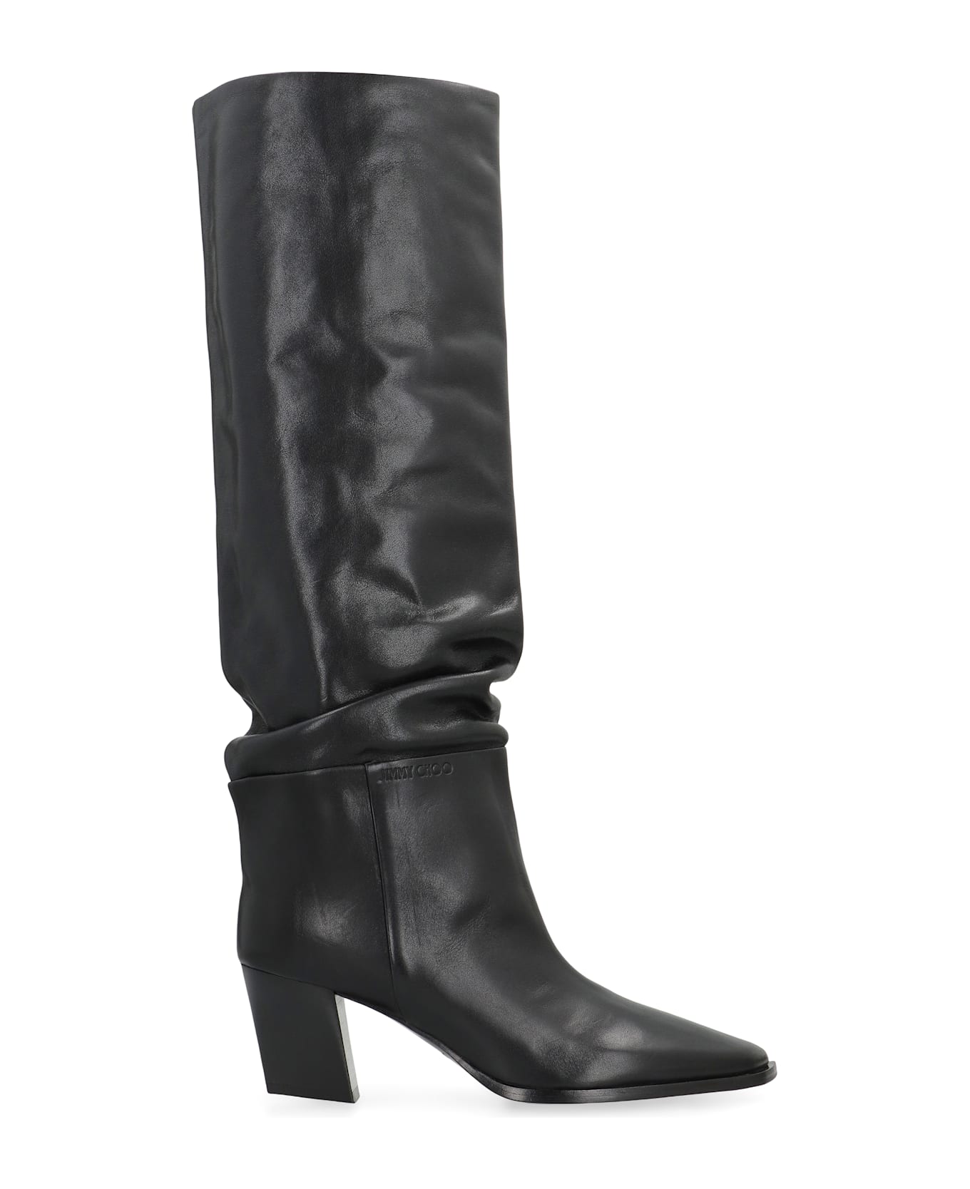 The boot is characterized by a slender silhouette. made of shiny calfskin, it features a sculptural oblique wide heel of 6 cm characterized by a faceted and triangular cut. perfect to match with outfits both casual and formal.