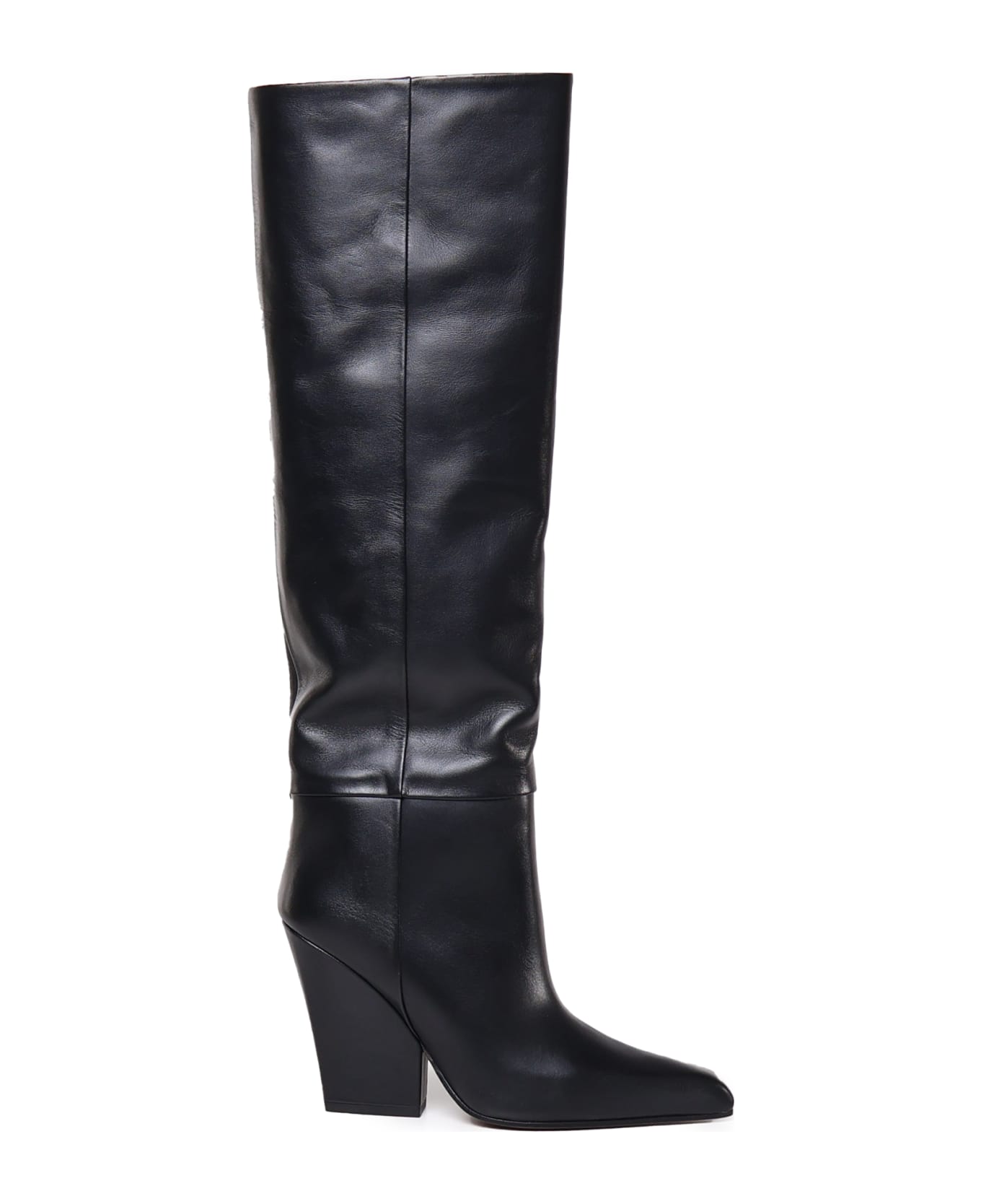 -Jane boot -Length below the knee -Wedge heel -Pointed design -Heel: 10 cm -Colour: Black Composition: 100% Leather