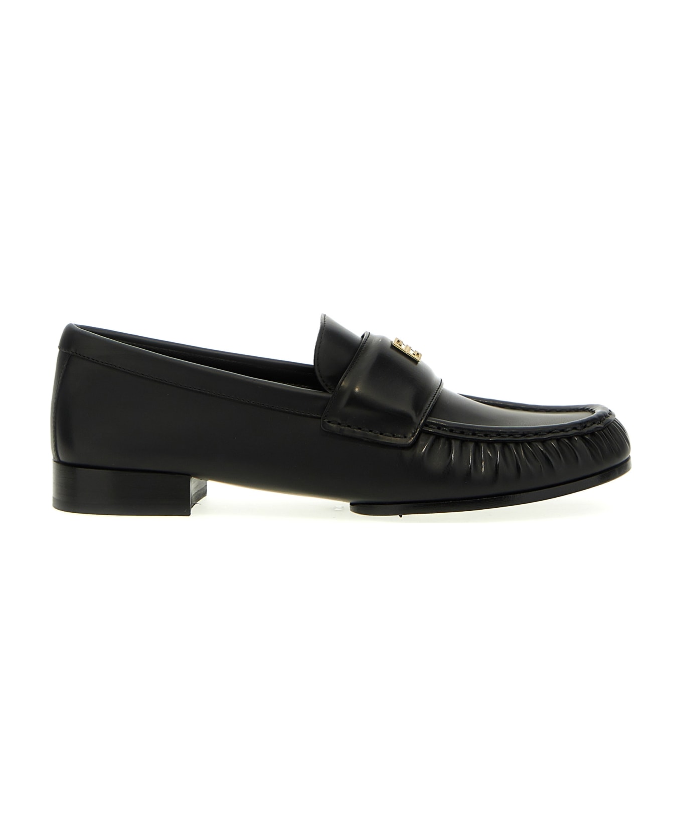 '4G' leather loafers with front metal logo, leather sole.