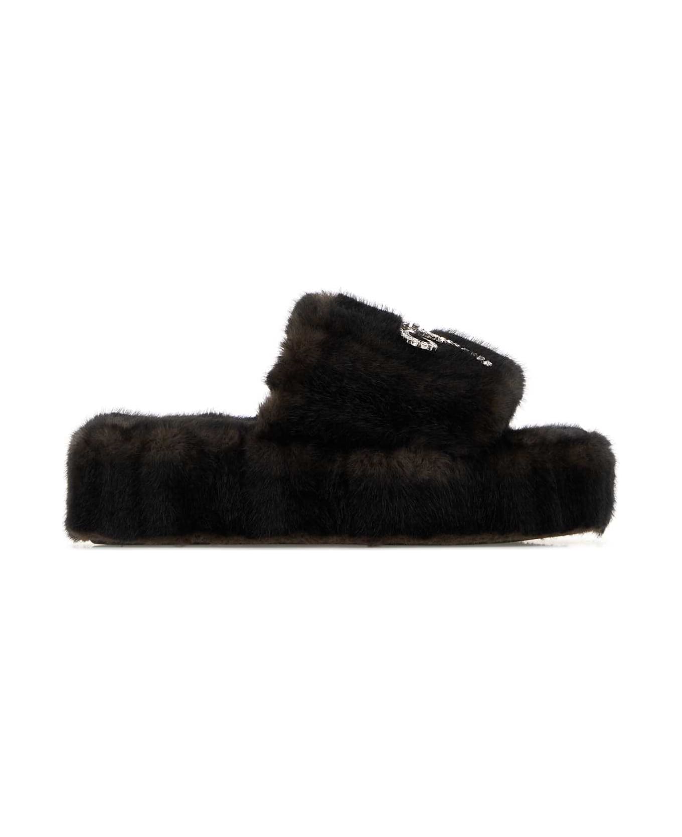Dark Brown Eco Fur Slippers from Balenciaga
