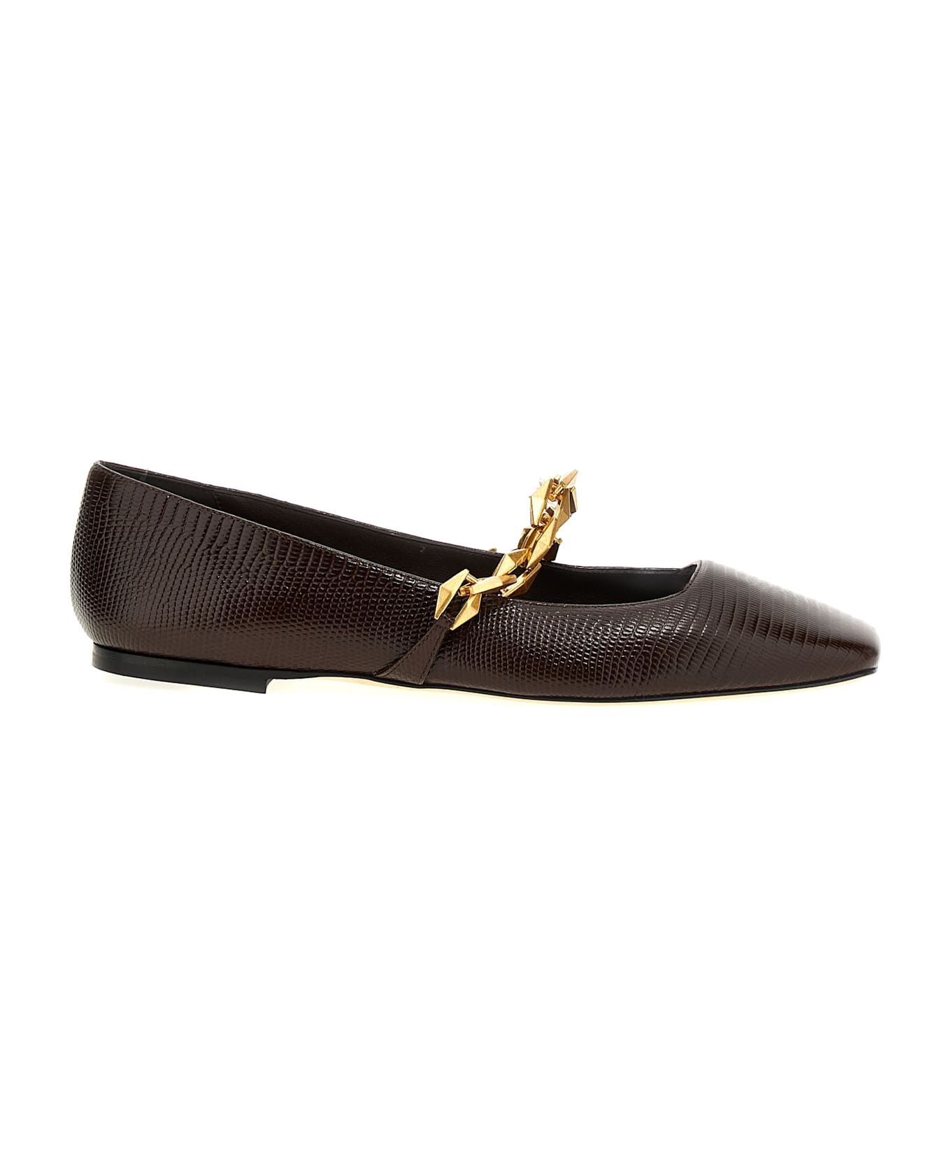 'Diamond Tilda' leather ballet flats with lizard print, square check, Diamond chain in antique metal on the instep, leather sole.