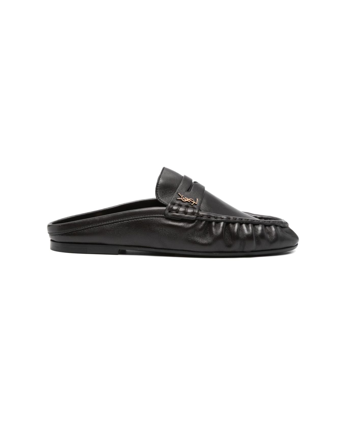 Saint Laurent ruched logo mules Made in Italy Highlights dark brown gold-tone logo ruched detail slip-on style flat sole Composition Outer: Calf Leather 100% Lining: Calf Leather 100% Sole: Calf Leather 100% Composition: Lambmetal