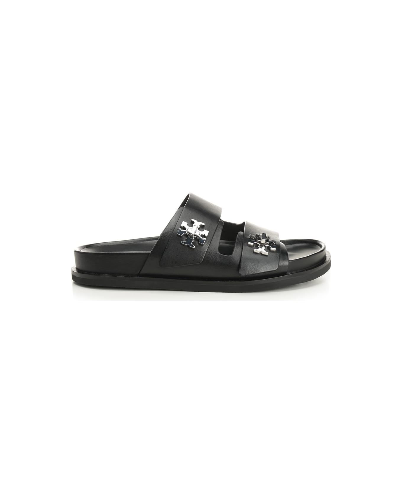 Sporty leather slider sandal by Tory Burch, with swivel details, double metal T, two straps, anatomical insole and rubber sole.