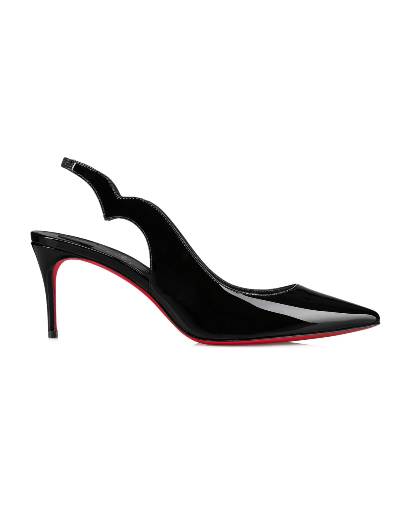 - V-shaped notches around the ankle - Thin 70 mm heel and intricate stitching - Made of black paint