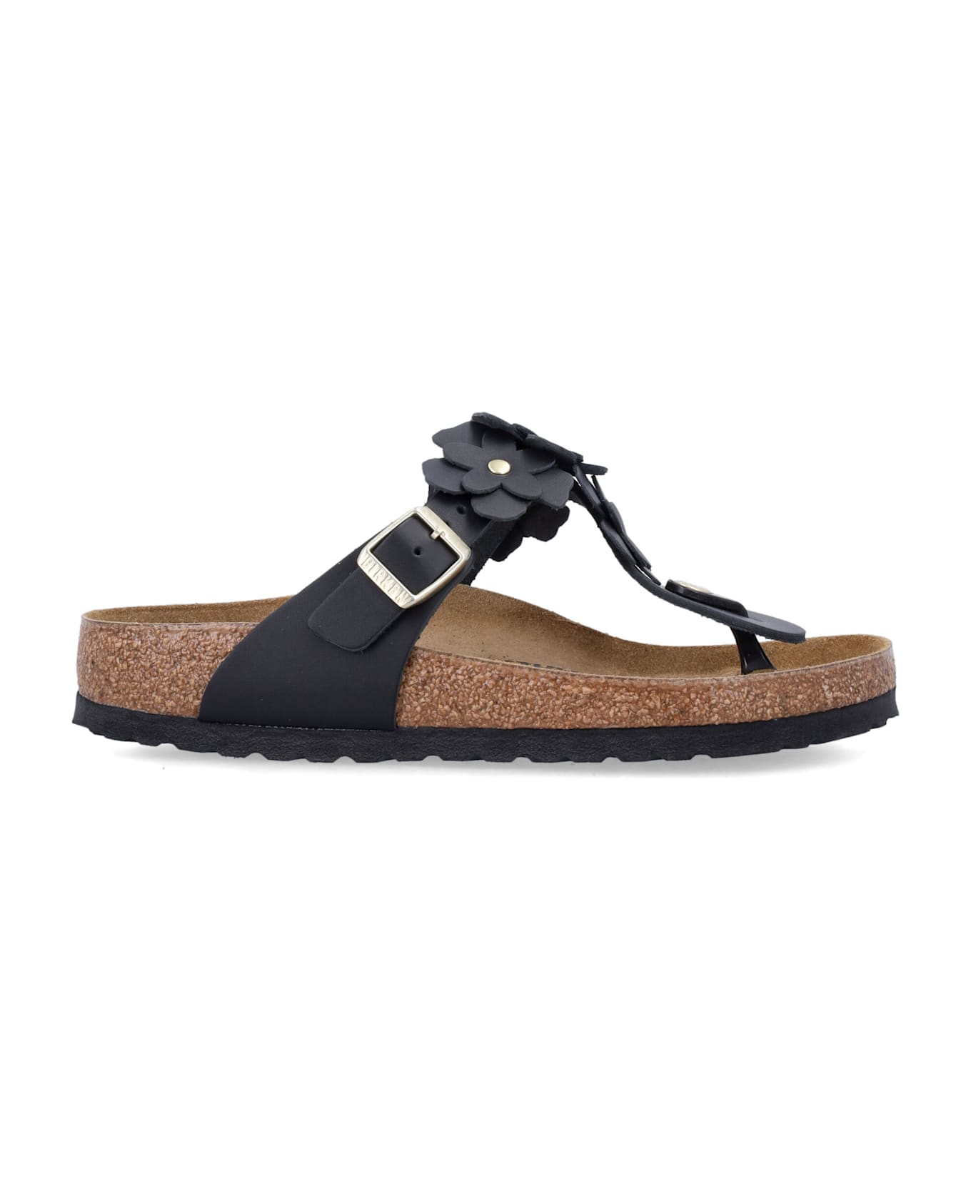 Gizeh Flower Embellishment Thong Sandals By Birkenstock. Featuring: Natural Leather Upper With Appliqué Flowers Thong With An Individually Adjustable Metal Pin Buckle Suede Lining Anatomically Shaped Cork-latex Footbed Eva Sole Regular Fit