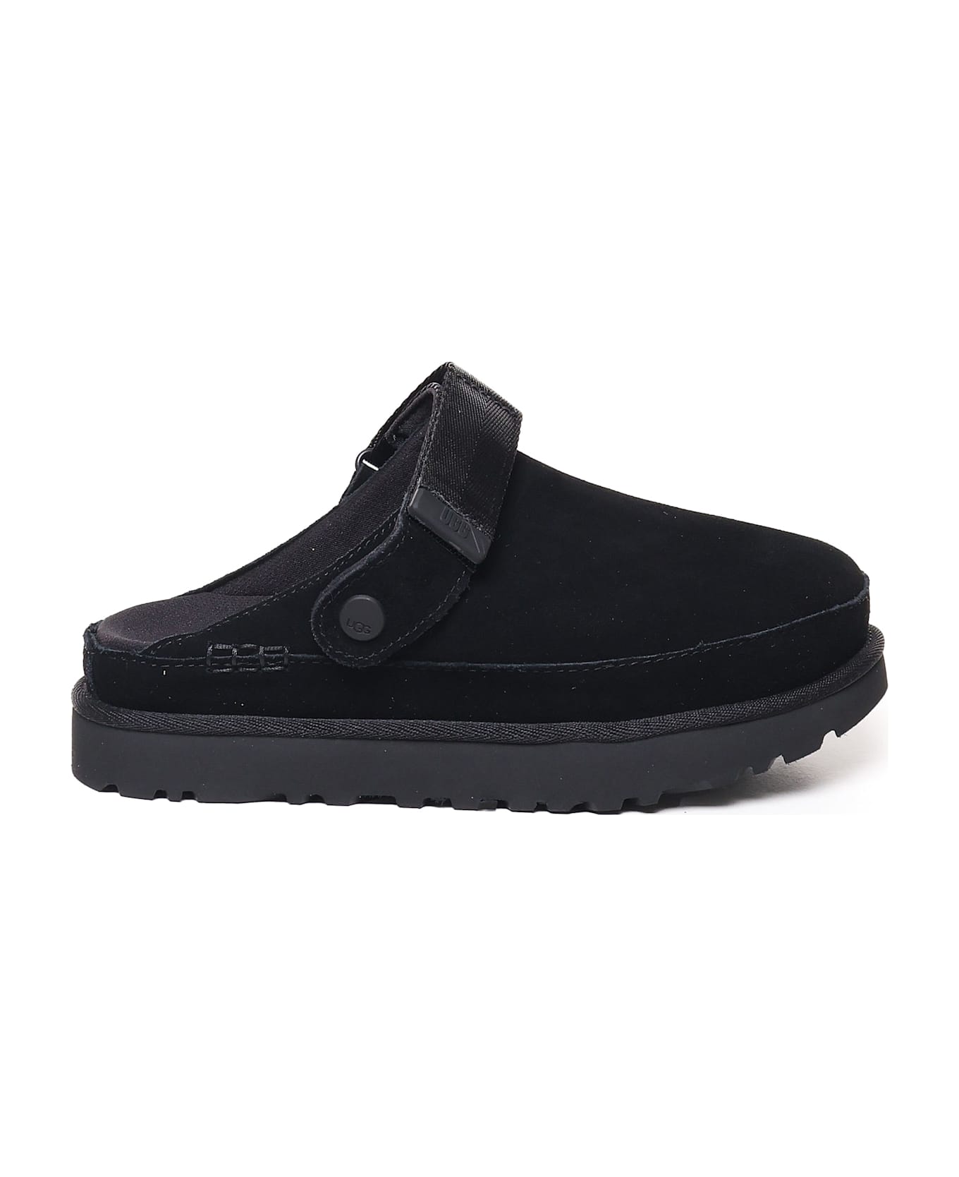 -Suede upper -Adjustable heel strap -EVA midsole -Sugarcane EVA outsole -Embossed UGG® logo -Color: Black