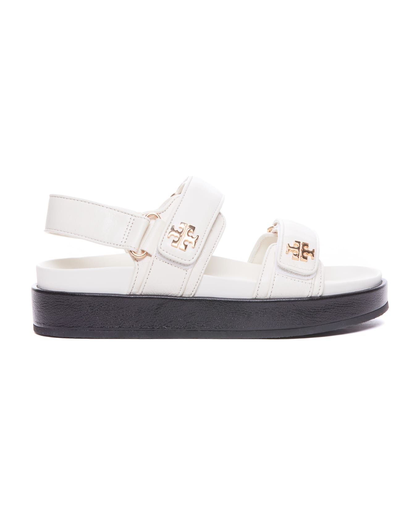 Tory Burch white Kira Sport sandals, lateral velcro closure, golden logo, leather upper