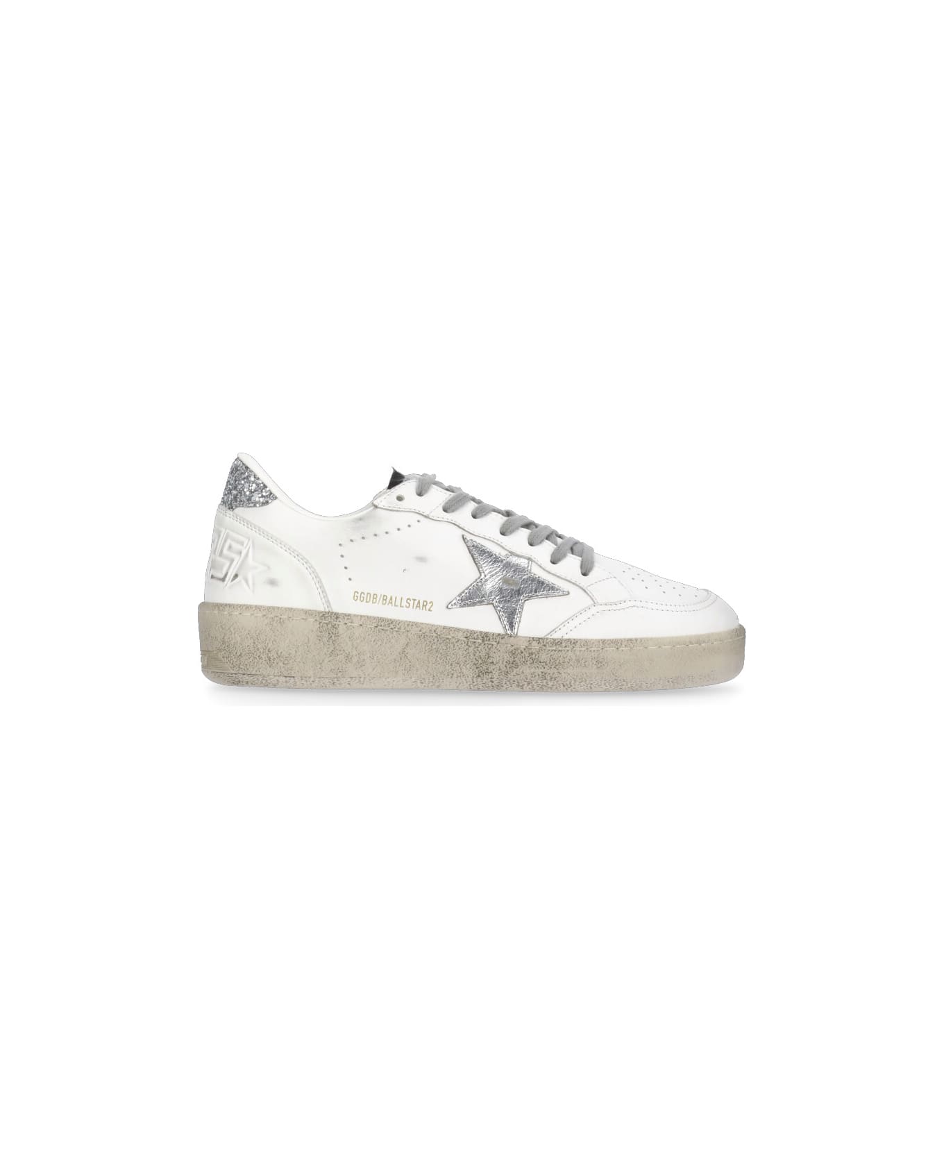 - White Golden Goose leather sneakers for woman - Destroyed effect - Round toe with breathable details - Logoed tongue - Side contrasting color Star logo - Logoed upper heel with glitter - Laces fastening