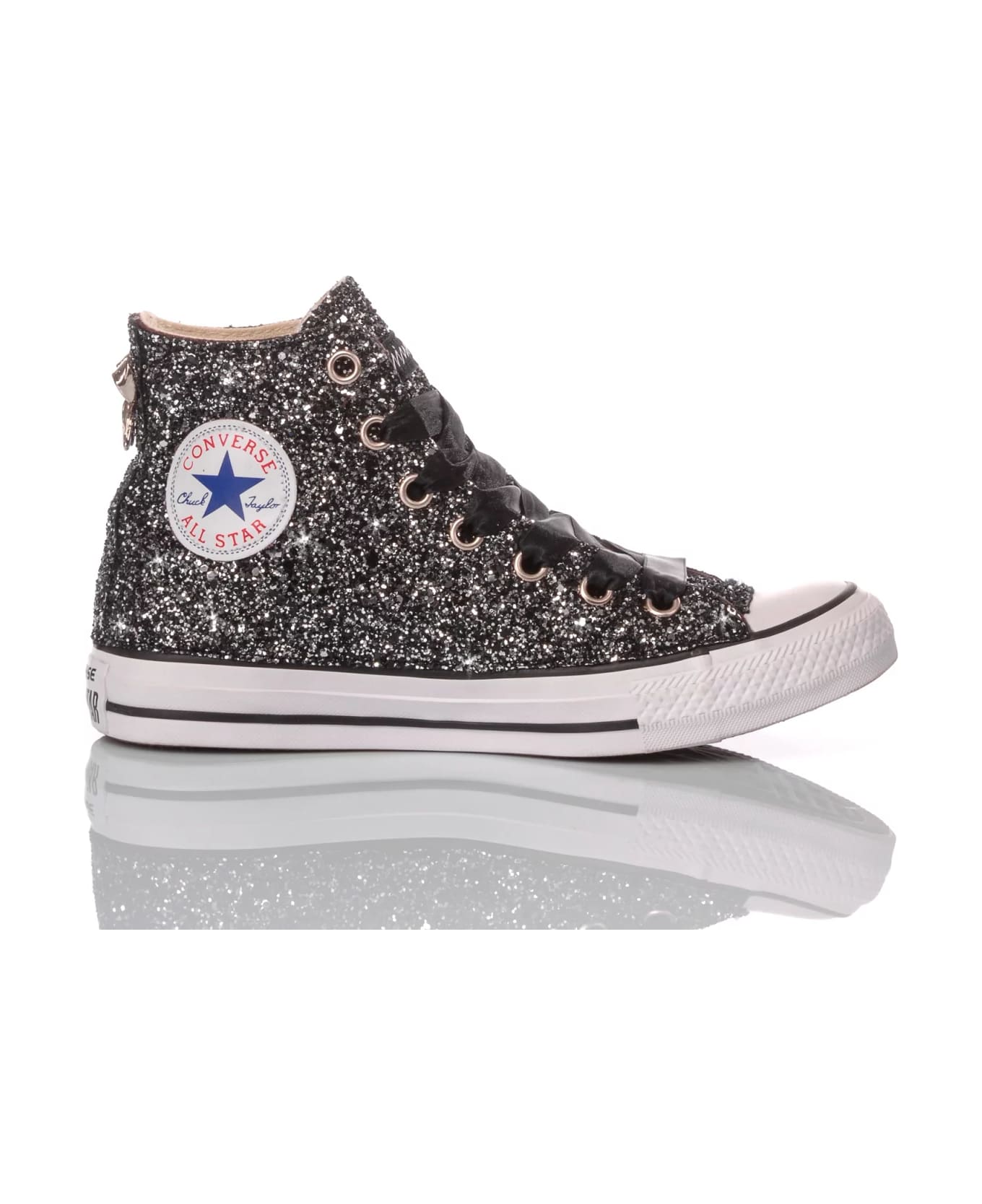 Converse All Star Full Black, the real queen of the party: it sparkles, it shines and it's colourful our full glitter is exactly what you need, entirely covered in black glitter, sides, tongue and back: ALL. With these women's trainers everyone will envy your feet. The Converse All Star Full Black will come with black satin laces in addition to its white originals. For added comfort, we offer you our heel lift insole which, in addition to comfort, gives you a few extra inches and an immediate figure boost.