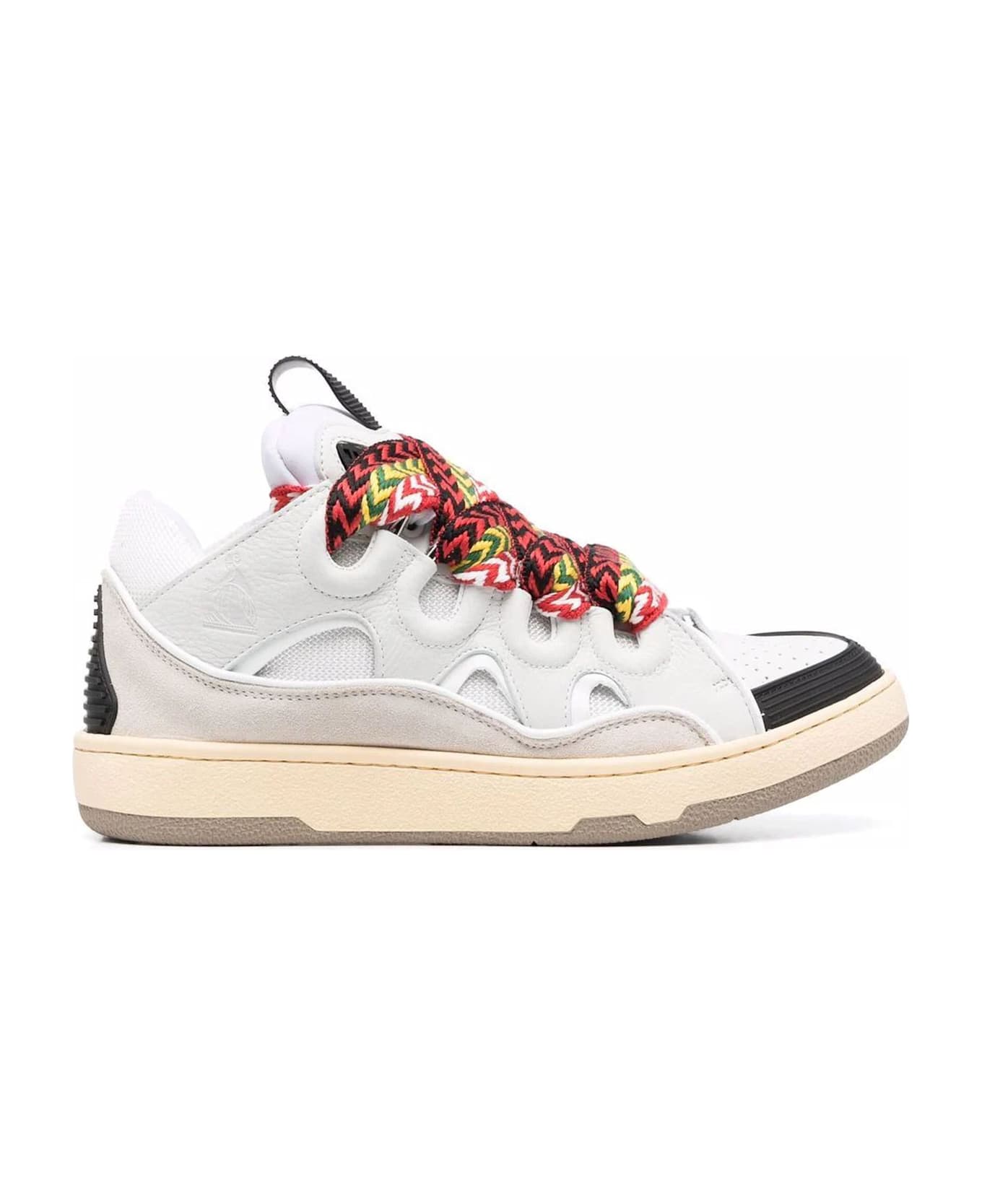 Curb leather sneakers, Almond toe, Waxed and woven double laces with a herringbone motif, Quilted tongue with the Lanvin label and an embossed Mother and Child logo Composition: 82% Polyester Woven, 18% Elastane