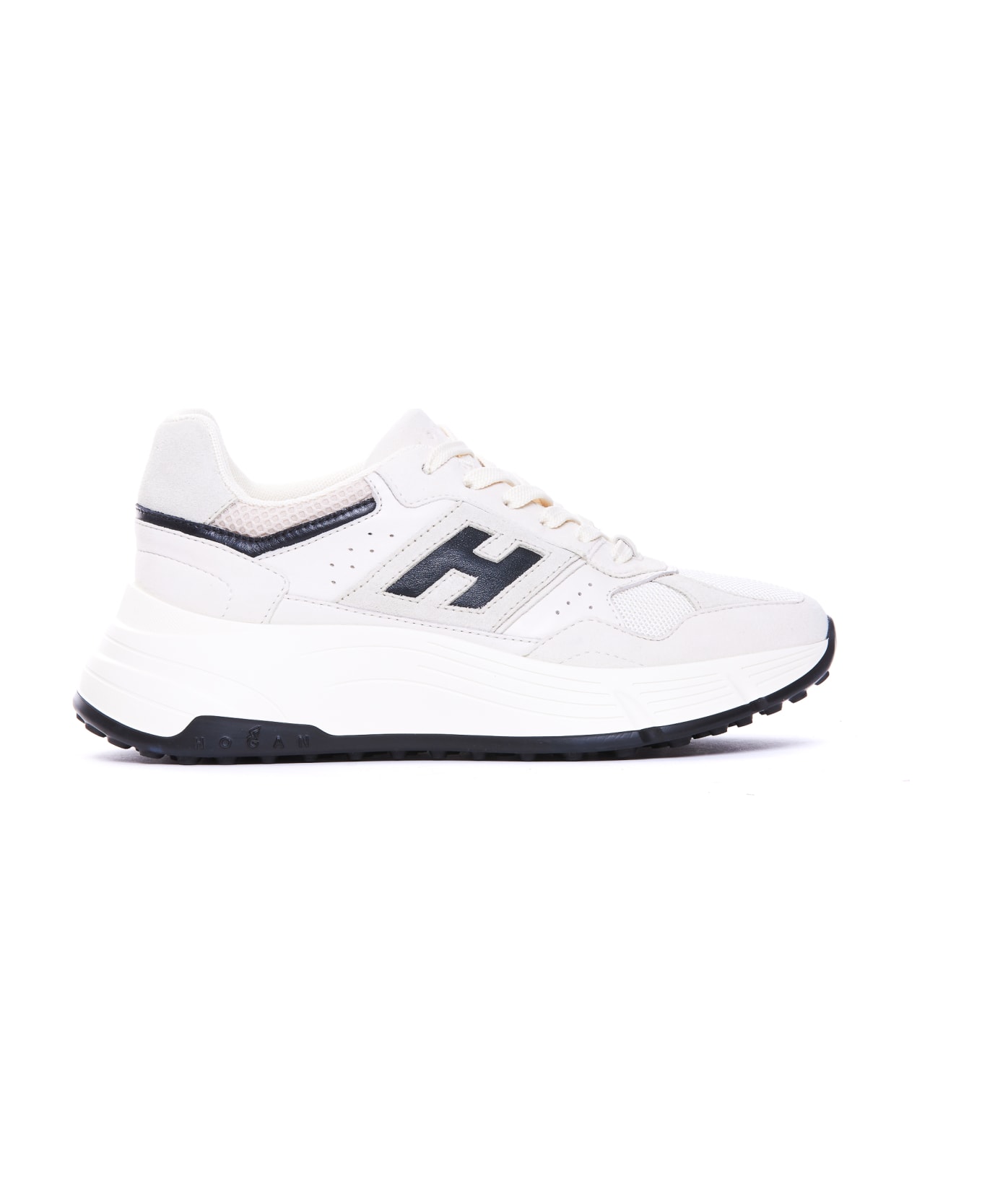 Hogan white HiFi sneakers, round toe, leather, suede and fabric upper, lateral H logo, laces closure Composition: 33% Leather, 33% Suede, 33% Fabric, Rubber Sole