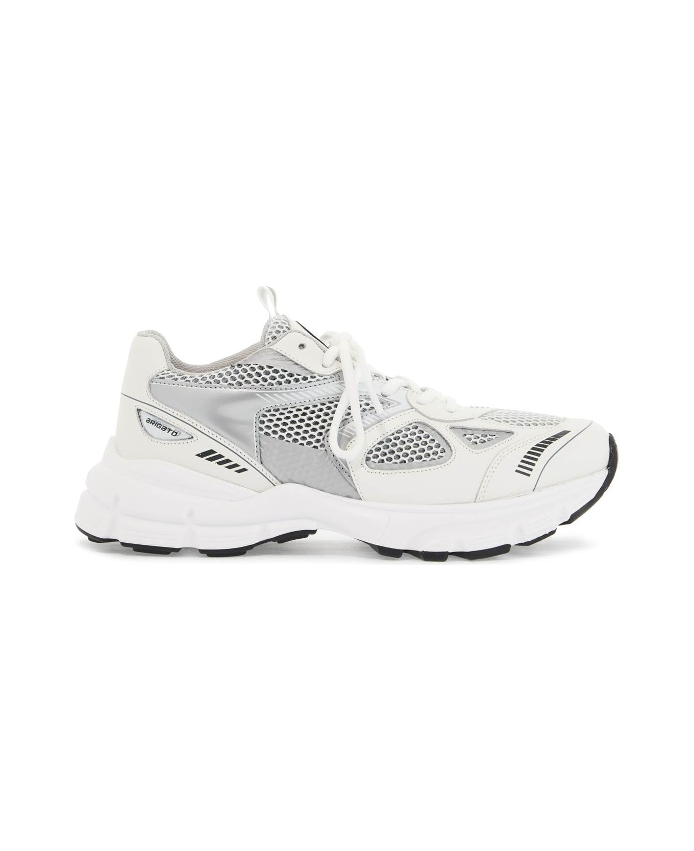 The Axel Arigato Marathon Runner sneakers feature a panelled upper made of LWG certified leather and mesh protected by PU transfer. They also have reflective ribbon details, a TPU logo patch on the tongue, side lettering logo, fabric lining with removable insole, and a thick thermoplastic rubber sole.