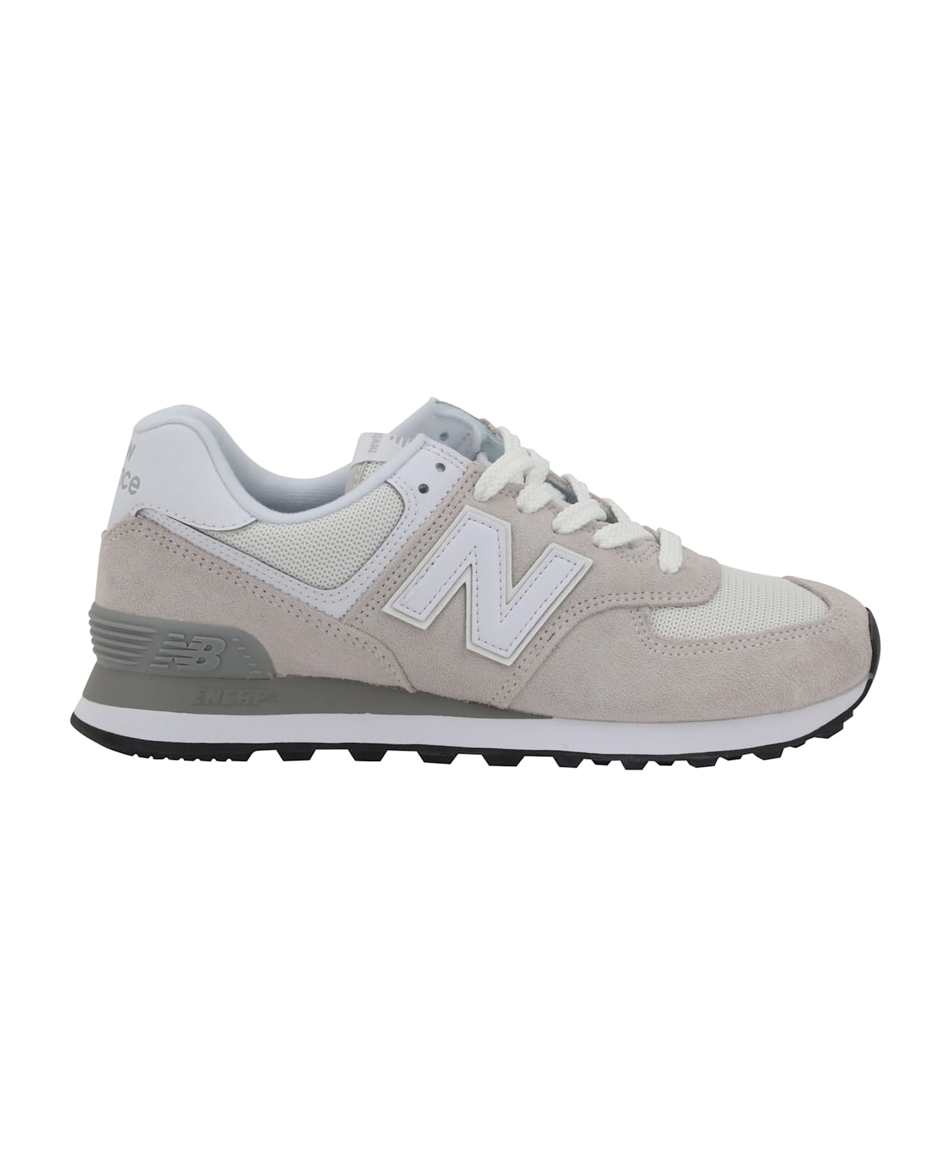 New balance's 574 sneakers combine sporty style and comfort. the mesh upper with suede details ensures breathability and durability. the lace-up front closure ensures a stable fit, while the elongated toe gives a streamlined look. raised, reinforced rubber outsole provides cushioning and support. the iconic contrasting logo patch on the side panels and the branded front tab complete the design with a distinctive touch.