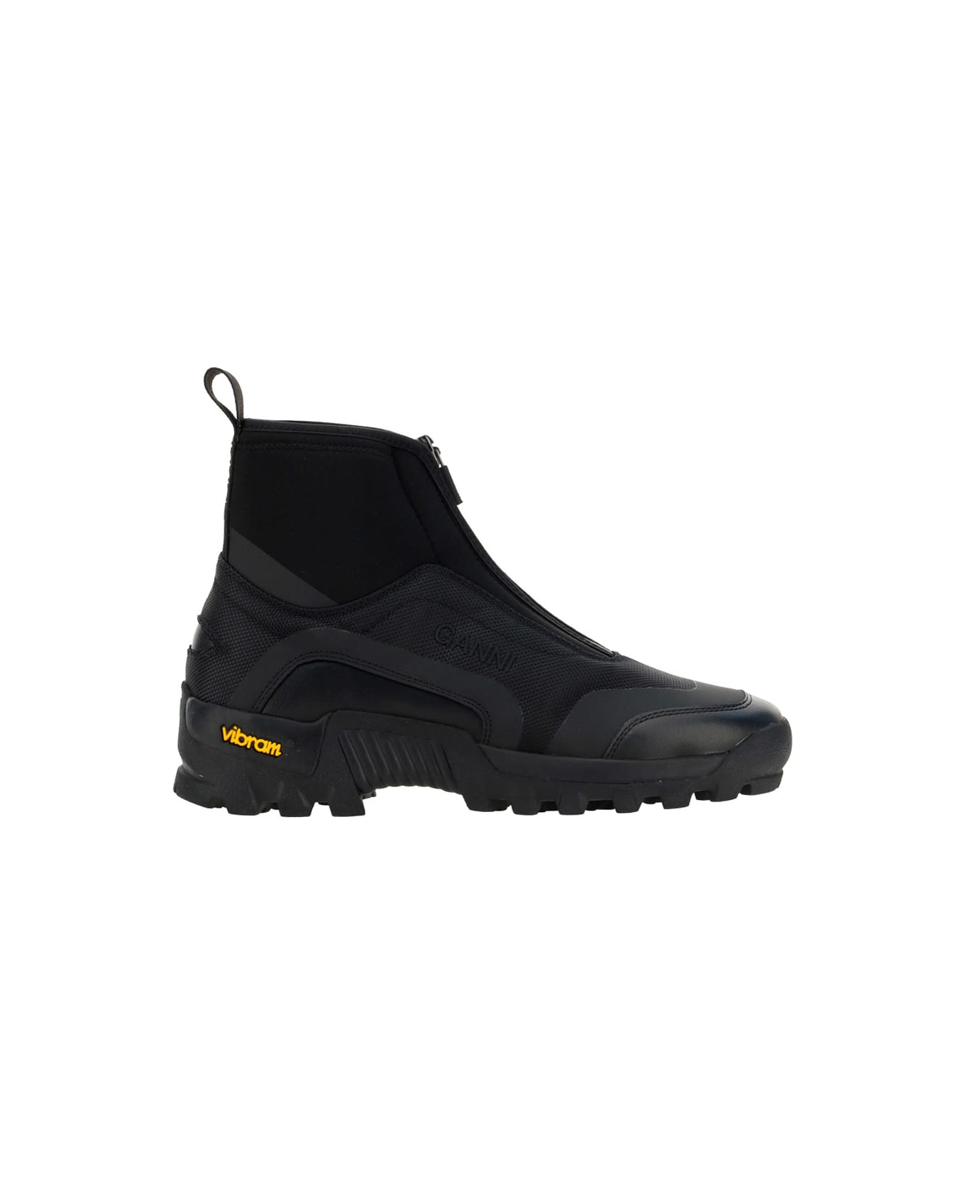 Performance sneakers by ganni, ankle-length model, structured rubber sole, vibram sole, nylon heel pull, zipper closure at front back of foot, paneled design, elastic side bands. Composition: 100% % Rubber, 68% % Polyester, 32% % Polyurethane