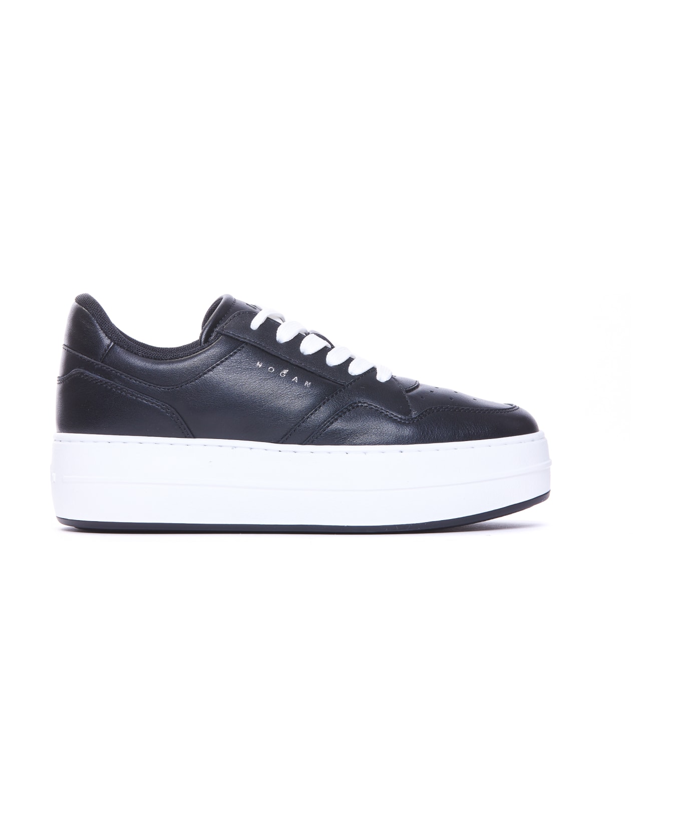 Hogan black Skyscraper sneakers, round toe, lateral mini logo, platform model, leather upper Composition: 100% Leather, Rubber Sole