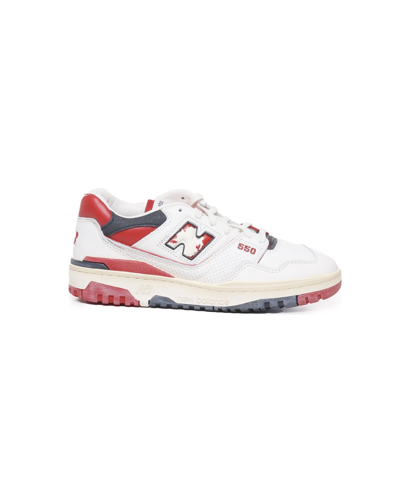 -Leather and fabric upper -Round tip -Closure with laces -Contrasting inserts -Embossed side logo -Rubber sole -Colour: White, Red