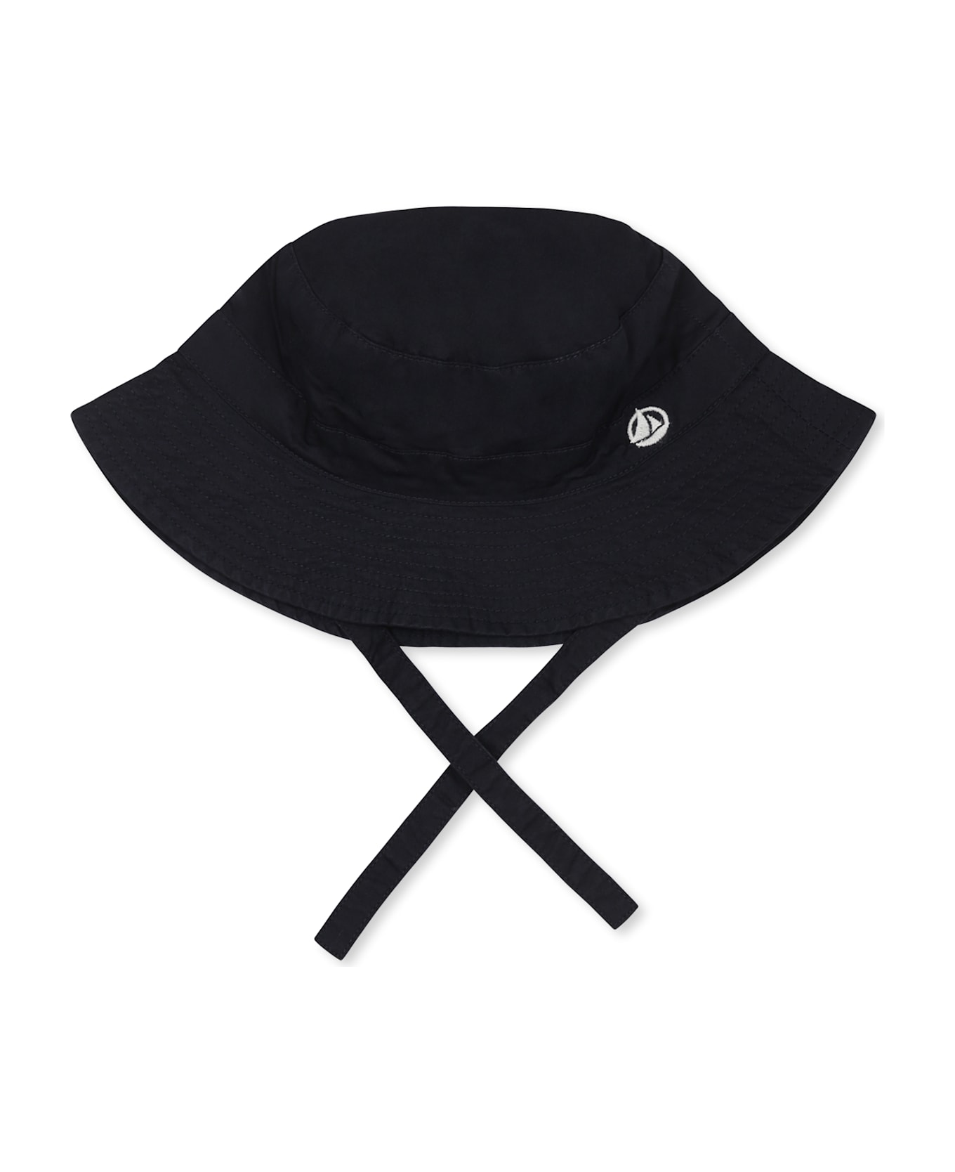 Blue cotton cloche, with laces; embellished with embroidered logo on the front.