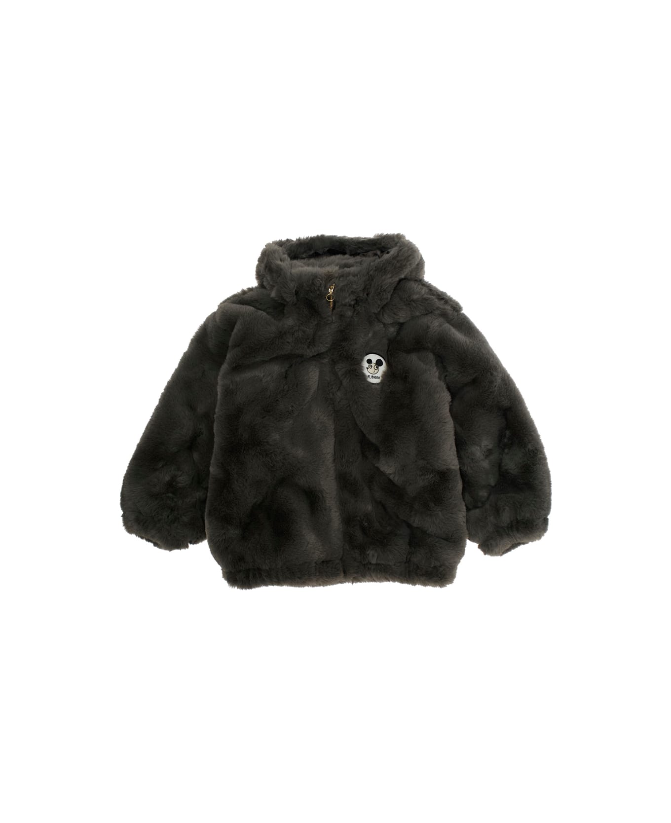 Grey Jacket With Logo Patch On The Front In Faux Fur Boy