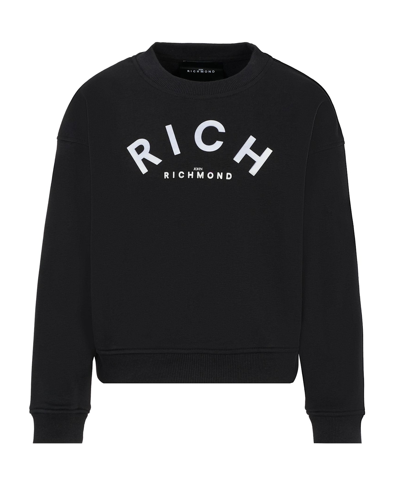 Black sweatshirt made of gauzed cotton, with long sleeves, crew neck, ribbed hem and cuffs. It is embellished with a white logo on the front.