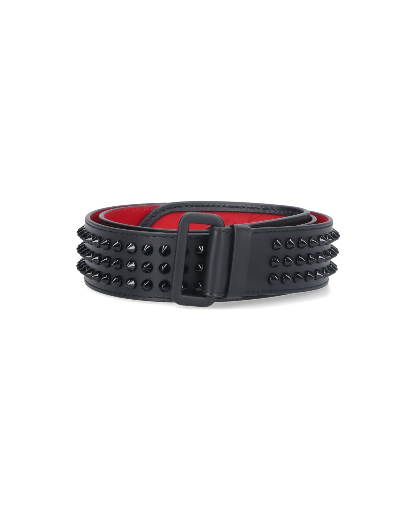 Christian Louboutin 'Loubi' studs belt in black calf leather with tonal metal studs pattern, adjustable.