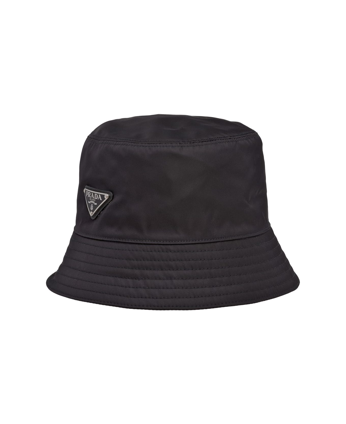 Our team selected this model for its high stylistic content and discreet impact. Prada Re-Nylon Bucket Hat Features Enamel triangle with logo, silver-tone details, tone-on-tone stitching, and a low, narrow brim. Color: Black. Composition: 100% Poliammide Riciclata-, 100% Res. pc-pu Solv. free