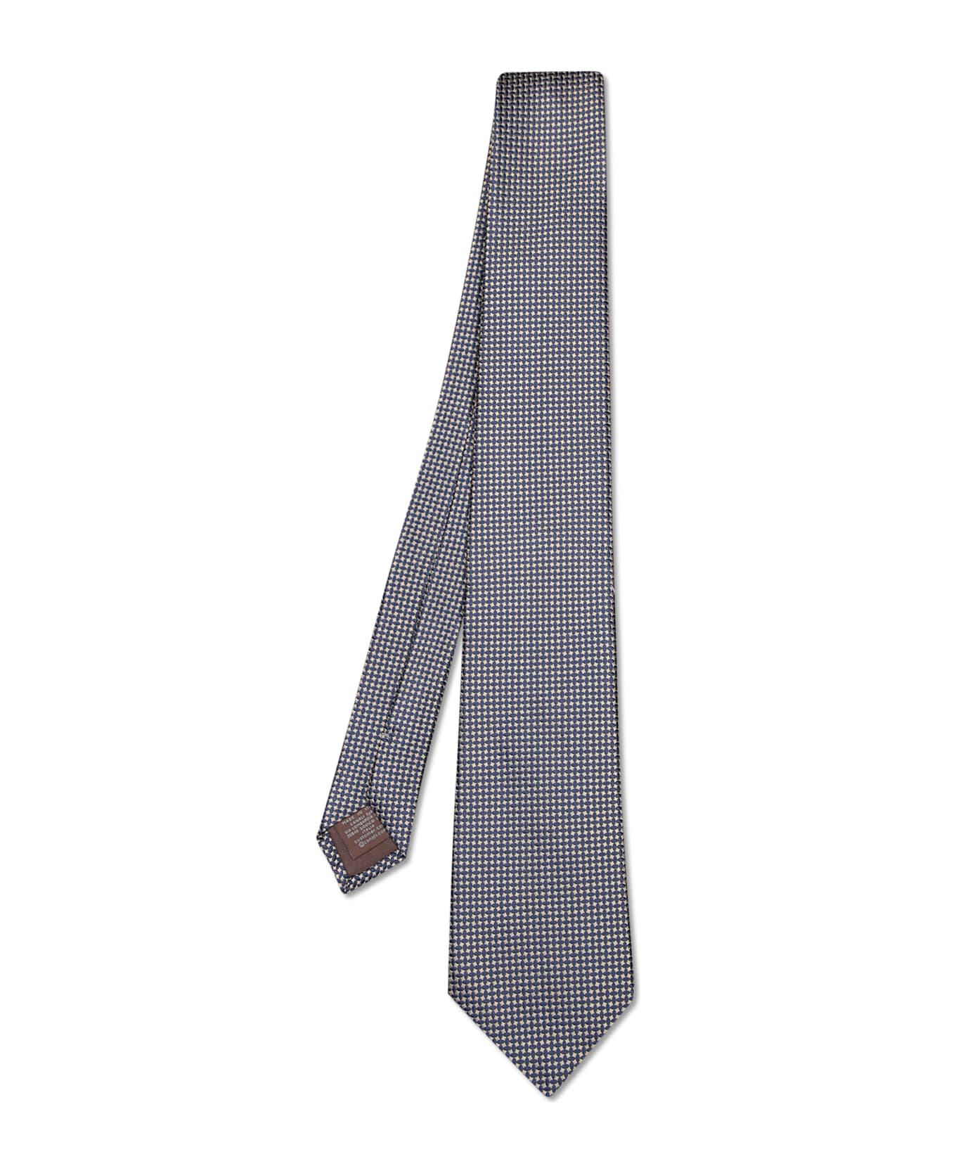 This CANALI tie is crafted from a high-quality silk blend that ensures remarkable softness and resilience. The elegant design featuring micro geometric patterns in shades of beige and blue adds a refined touch to any suit. Composition: 100% Silk