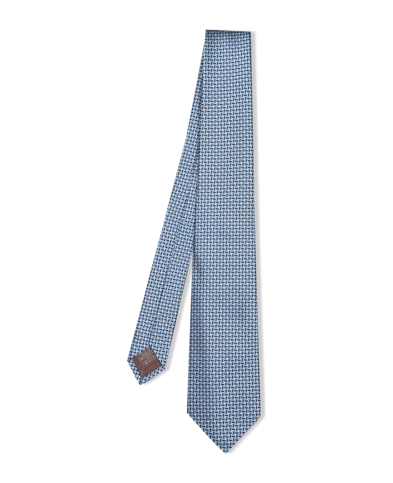 Exclusive Canali silk tie, featuring an intriguing geometric design in shades of blue and light blue. High-quality craftsmanship ensures elegance and durability, complemented by an internal lining that attests to the brand's authenticity. Composition: 100% Silk