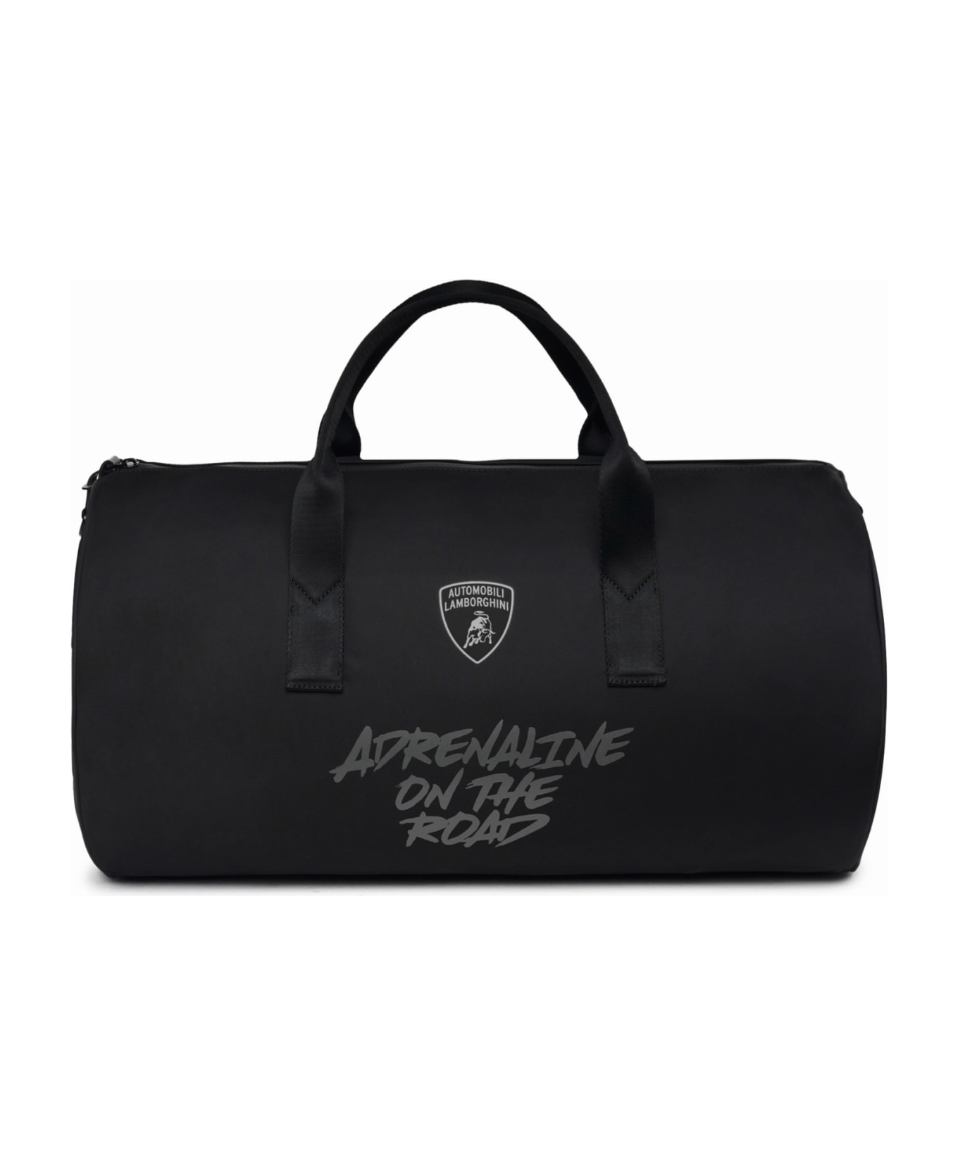 Automobili lamborghini bag in smooth nylon in the colour achelous blue, featuring a lining and maxi lettering in imir orange + shield with white outline, both in a digital print.