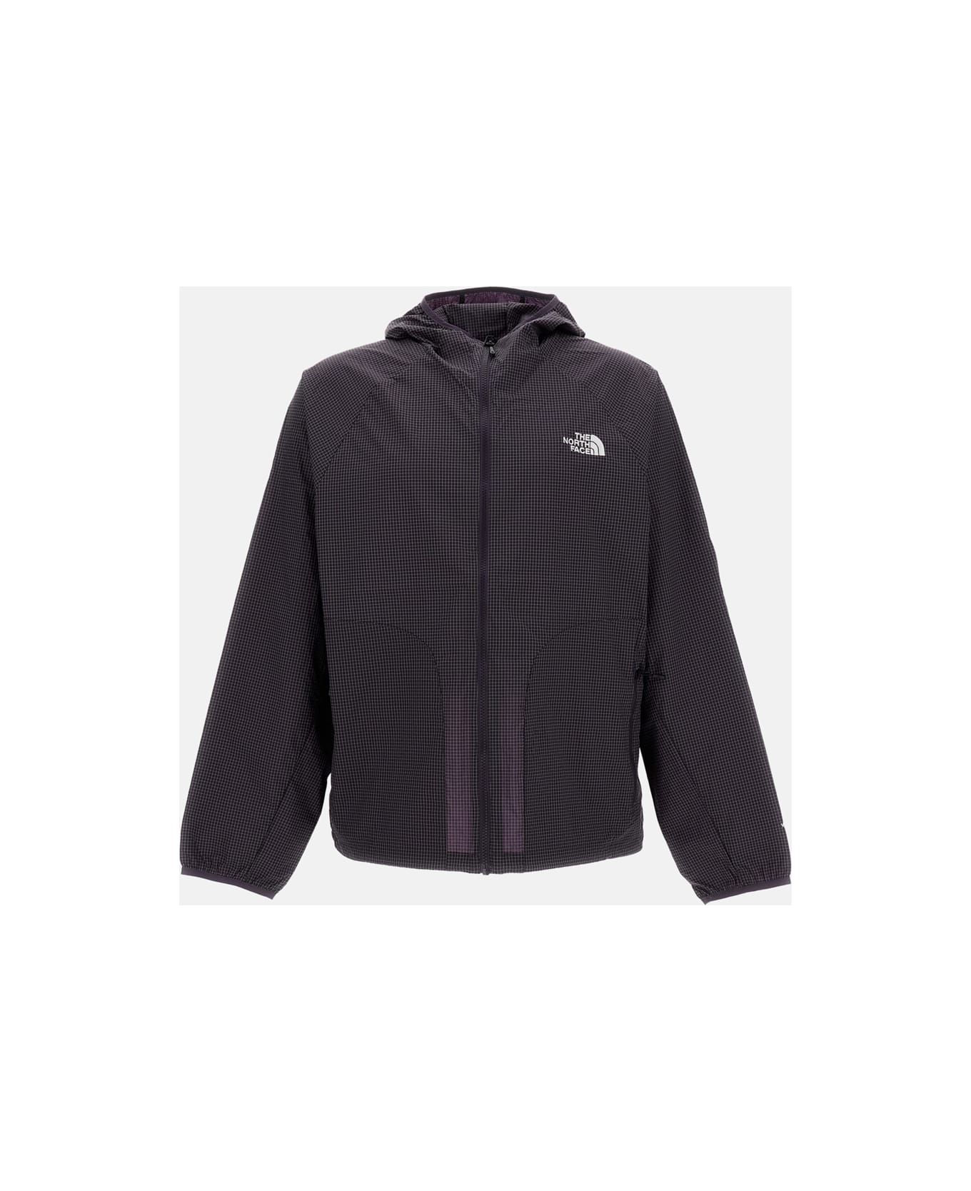 Checkered hooded windbreaker Relaxed fit Zip closure Drawstring hem Front zip pockets Embroidered logo on the front Color: violet