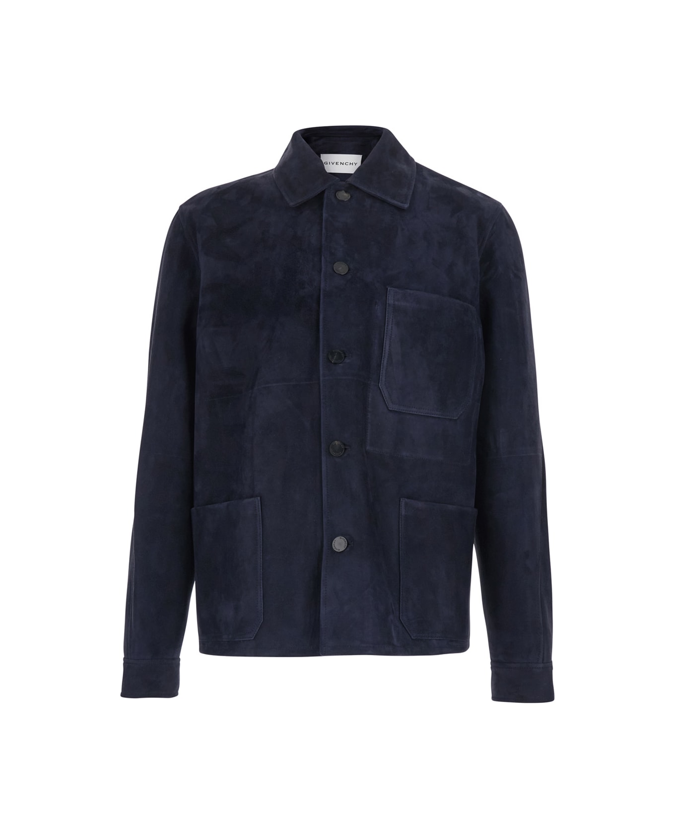 Jacket Blue Classic collar Long sleeves Front button closure Four front patch pockets Buttoned cuffs Straight hem Suede Regular fit