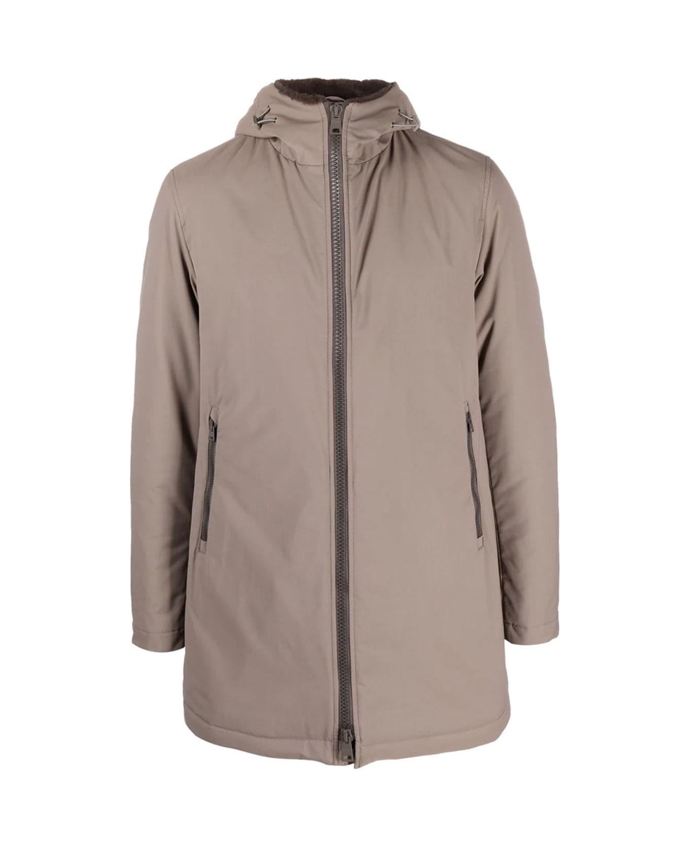 Mud colored parka with padding Hood and zip closure Two side pockets Long sleeves Straight hem Composition: 100% Polyamide