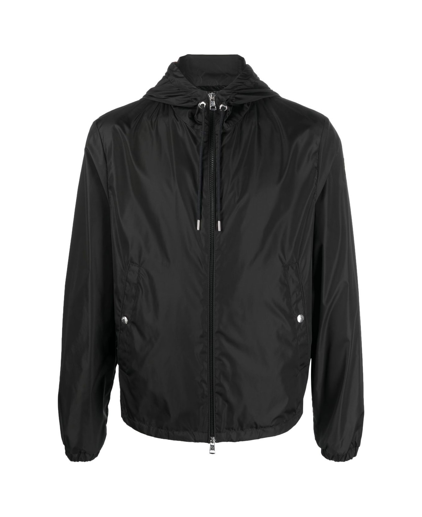 black classic hood drawstring fastening front zip fastening long sleeves two diagonal pockets to the sides