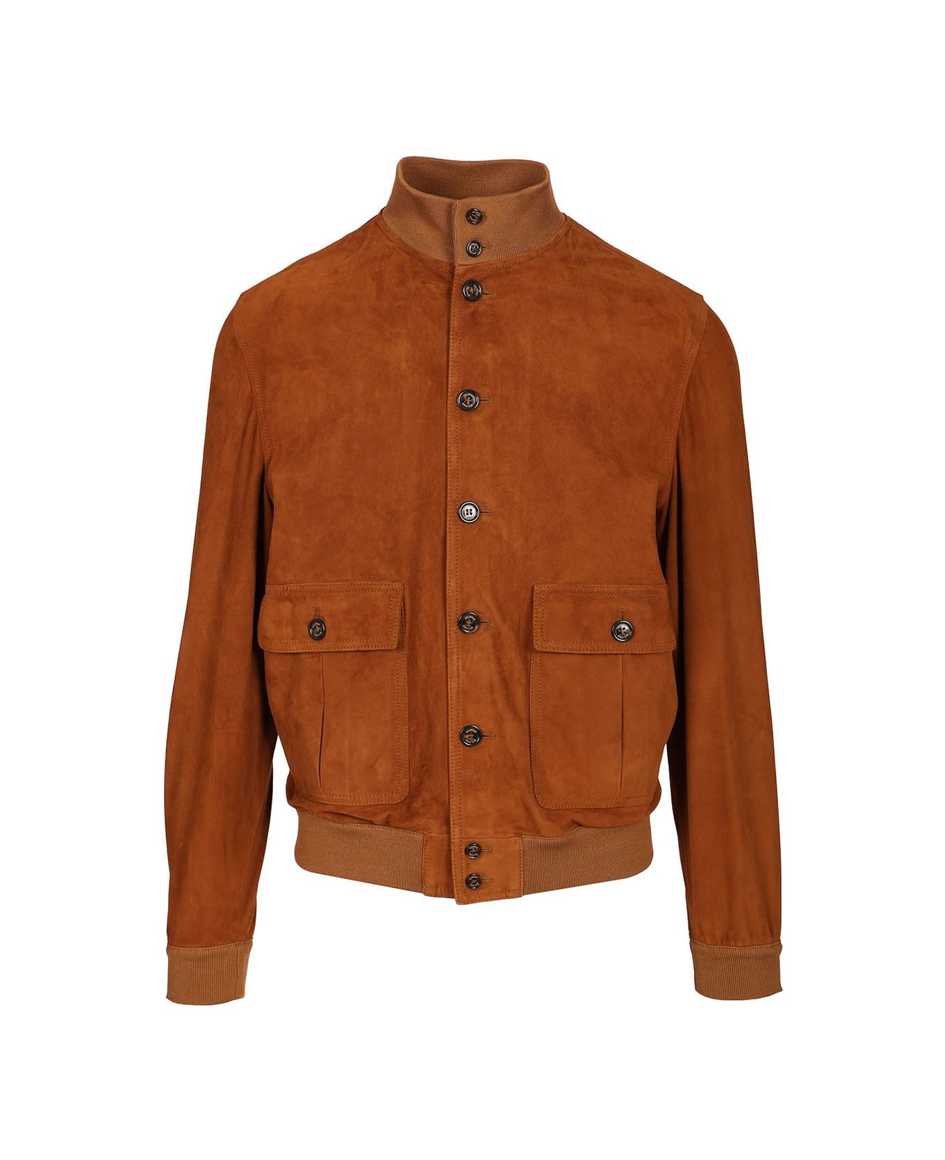 "Valstarino" goat suede jacket by Valstar, with cotton ribs on the bottom, cuffs and collar, unlined, button fastening and side patch pockets with flap and button fastening