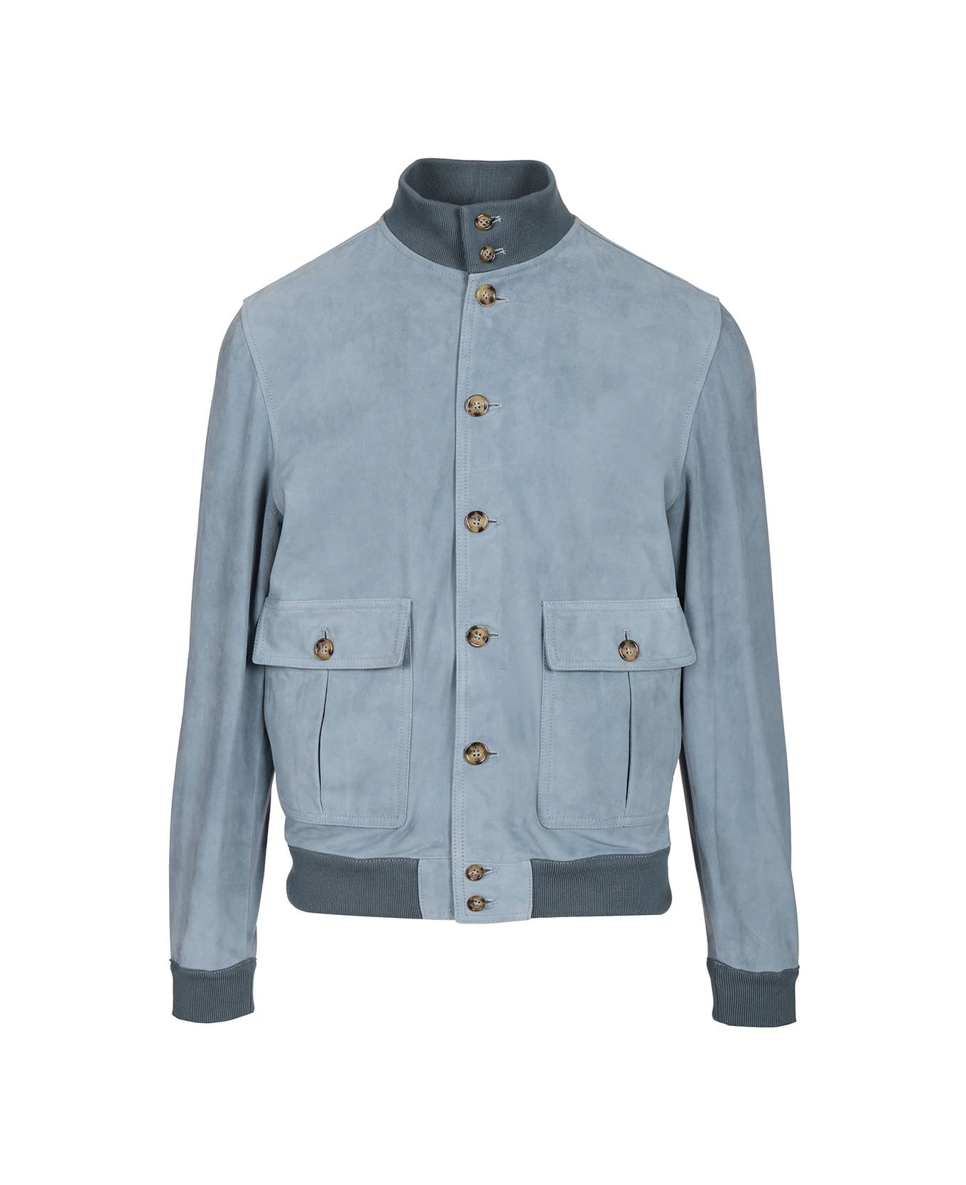 "Valstarino" goat suede jacket by Valstar, with cotton ribs on the bottom, cuffs and collar, unlined, button fastening and side patch pockets with flap and button fastening