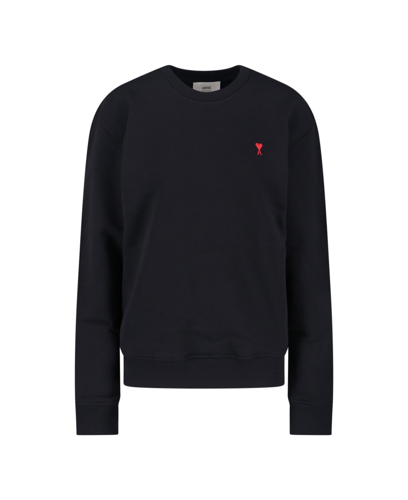 Ami 'De coeur' crew neck sweatshirt in black cotton jersey with long sleeves, red logo embroidery on the front, ribbed trims, straight hem. Composition: 100% Cotton
