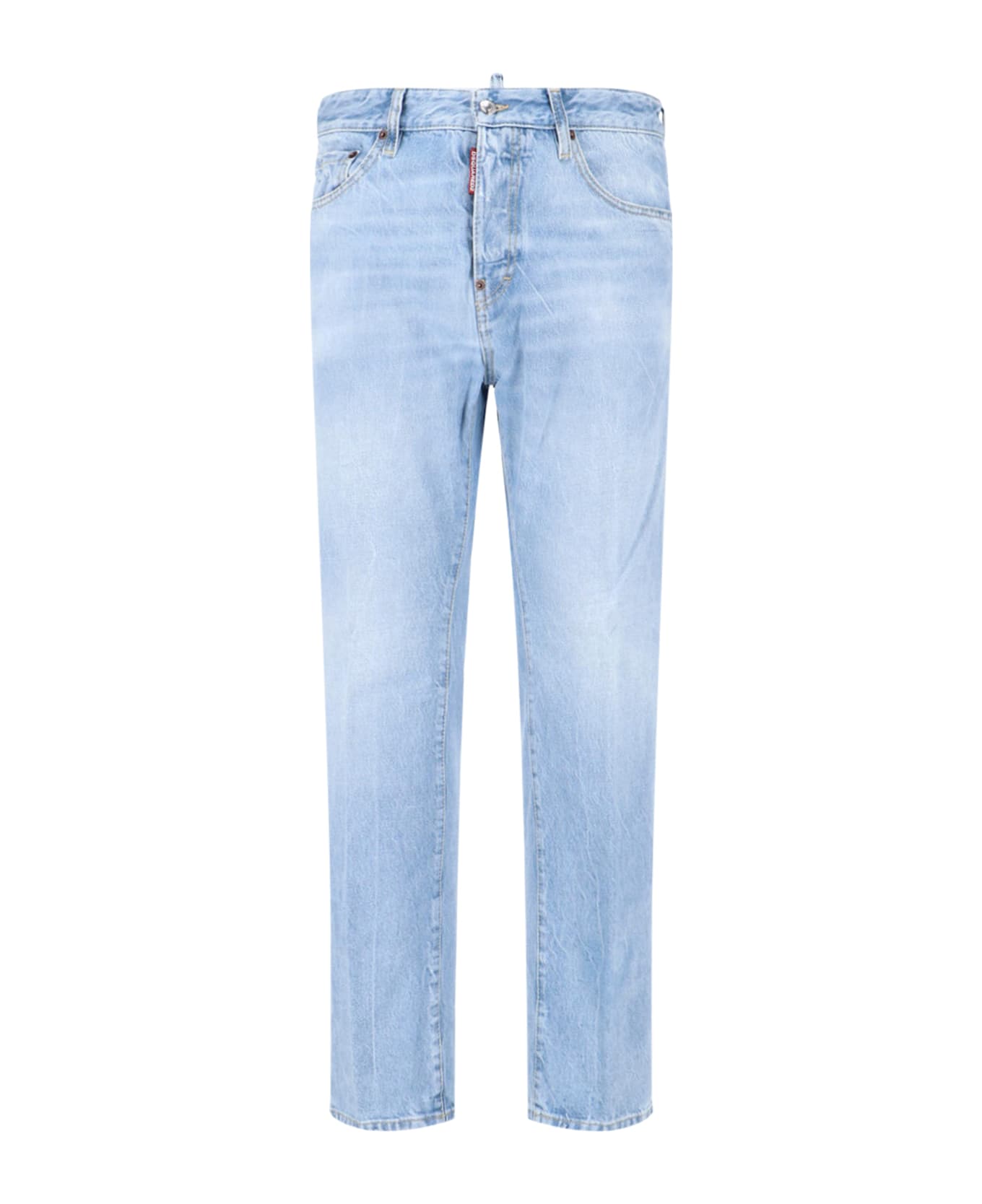 Dsquared2 straight light blue cotton jeans, button closure, mid waist, logo tag on the front, five pockets, logo patch on the back. Composition: 100% Cotton