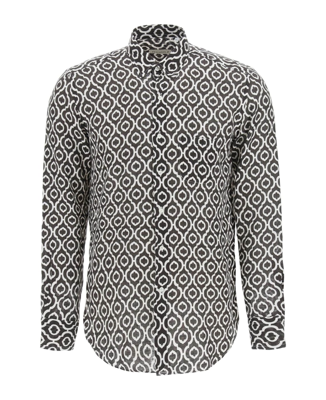 Peninsula shirt in lightweight linen canvas, featuring all over geometric pattern. Button-down front, chest patch pocket and curved hem. Slim fit. Dust bag included. The model is 185 cm tall and wears a size L. Composition: 100% lino