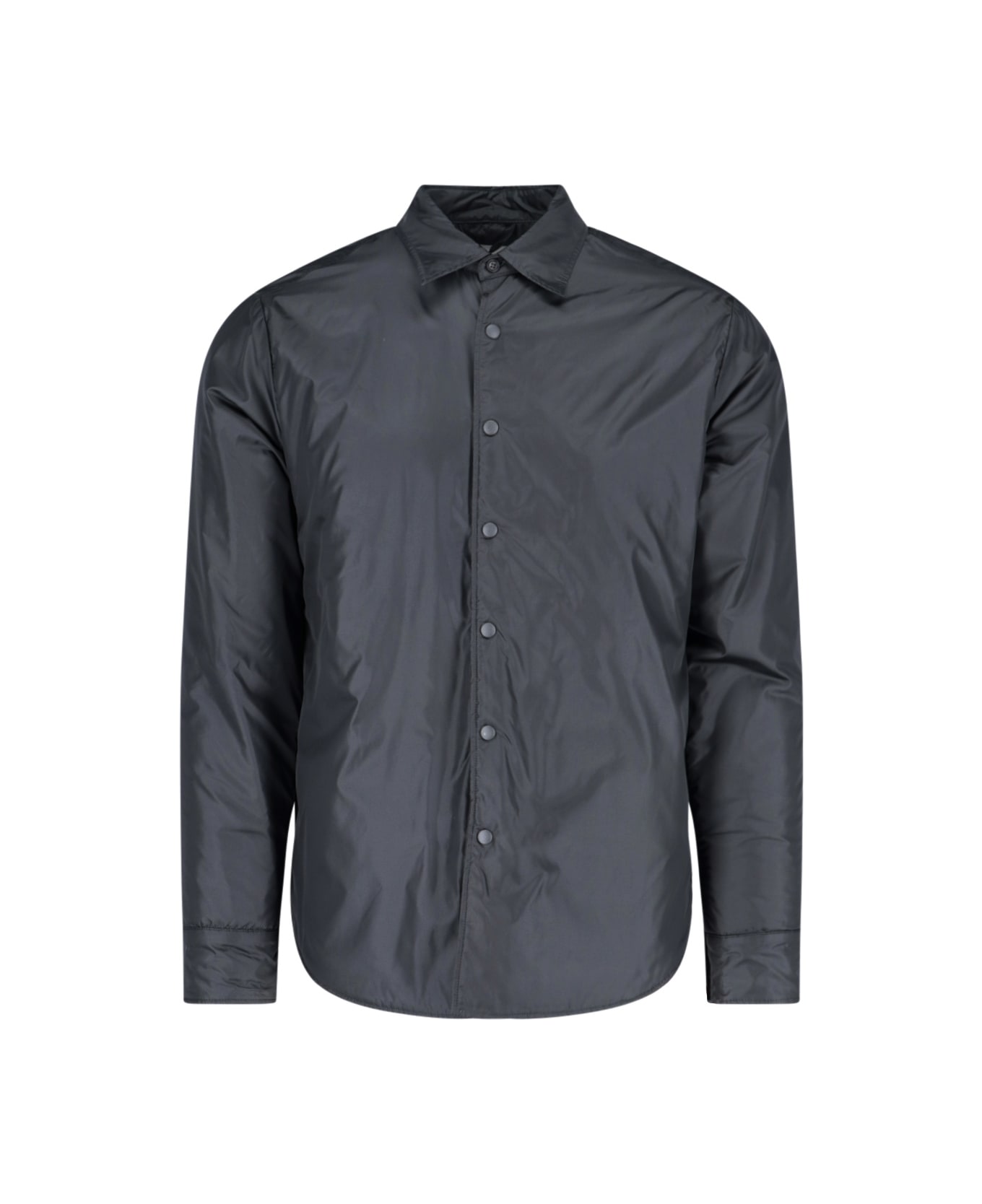 Aspesi 'Re-Shirt' Jacket, nylon, grey, classic collar, button fastening, button cuffs, curved hem.