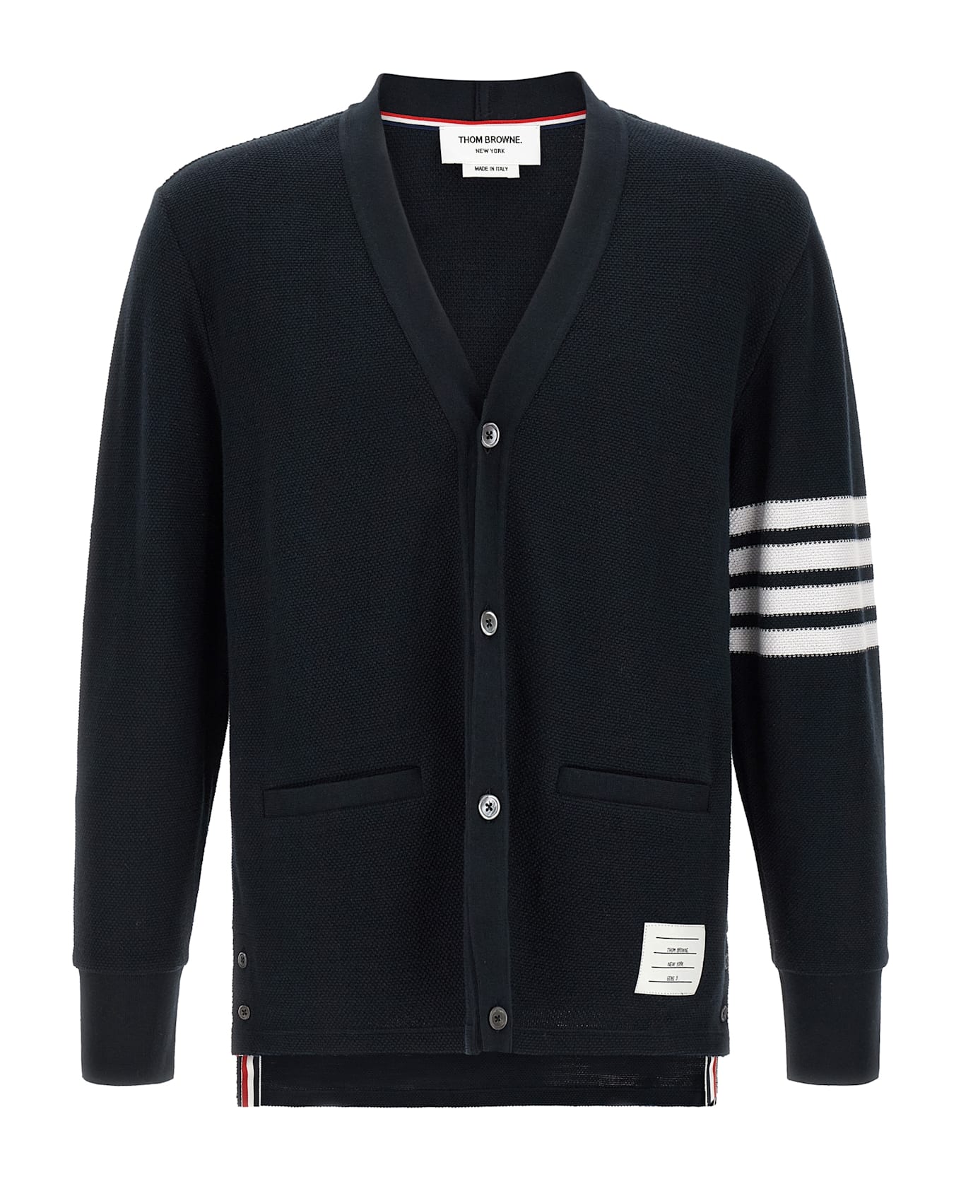 Honeycomb cotton cardigan, V-neck, logo patch and front mother-of-pearl button closure, long sleeves with 4BAR intarsia and cuffs, pockets, side slits with buttons and grosgrain RWB tape, asymmetrical hem. Composition: 100% cotton